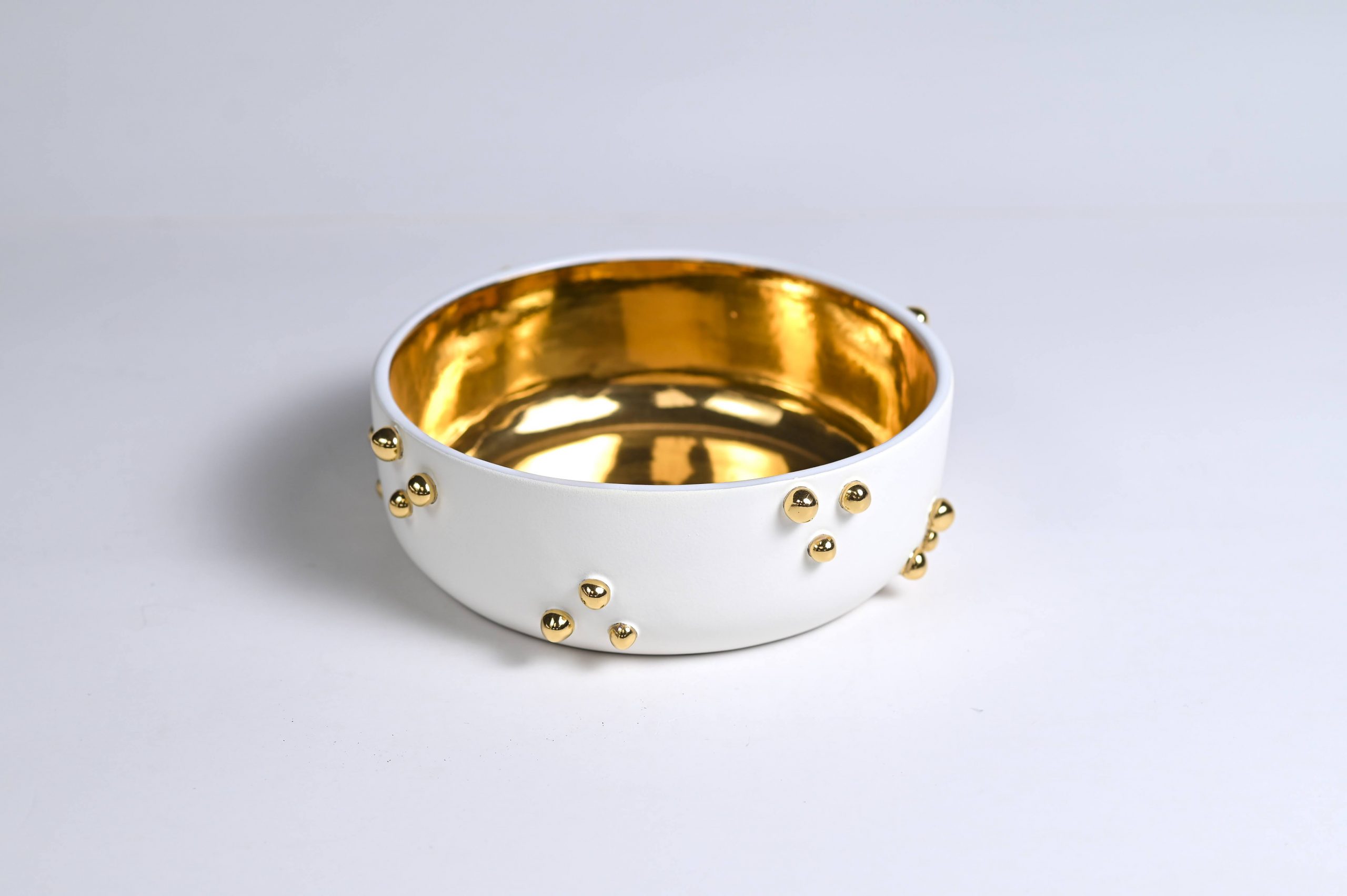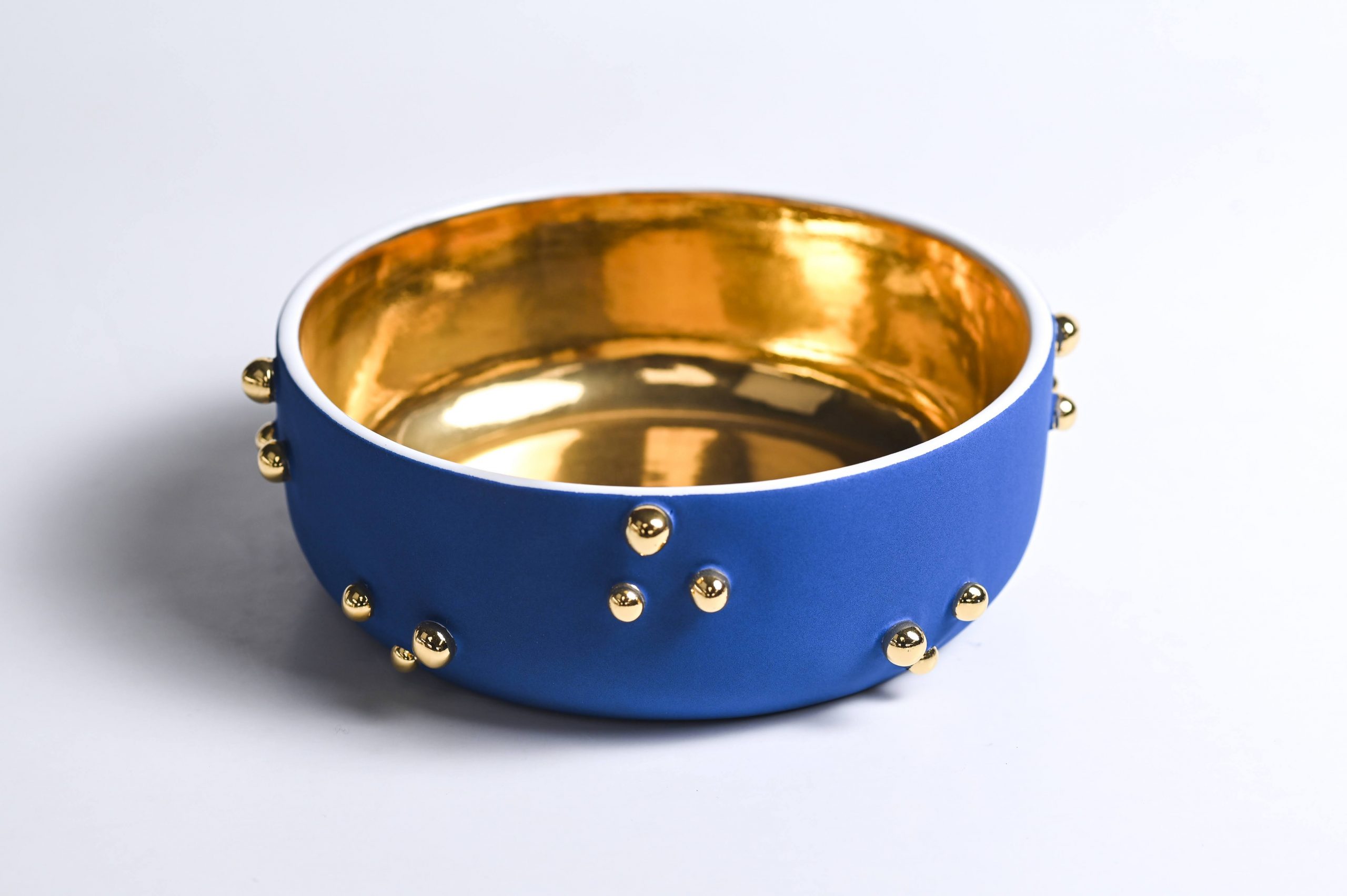 Handcrafted of signature ultra matte glazes on stoneware or porcelain with 22k gold details.