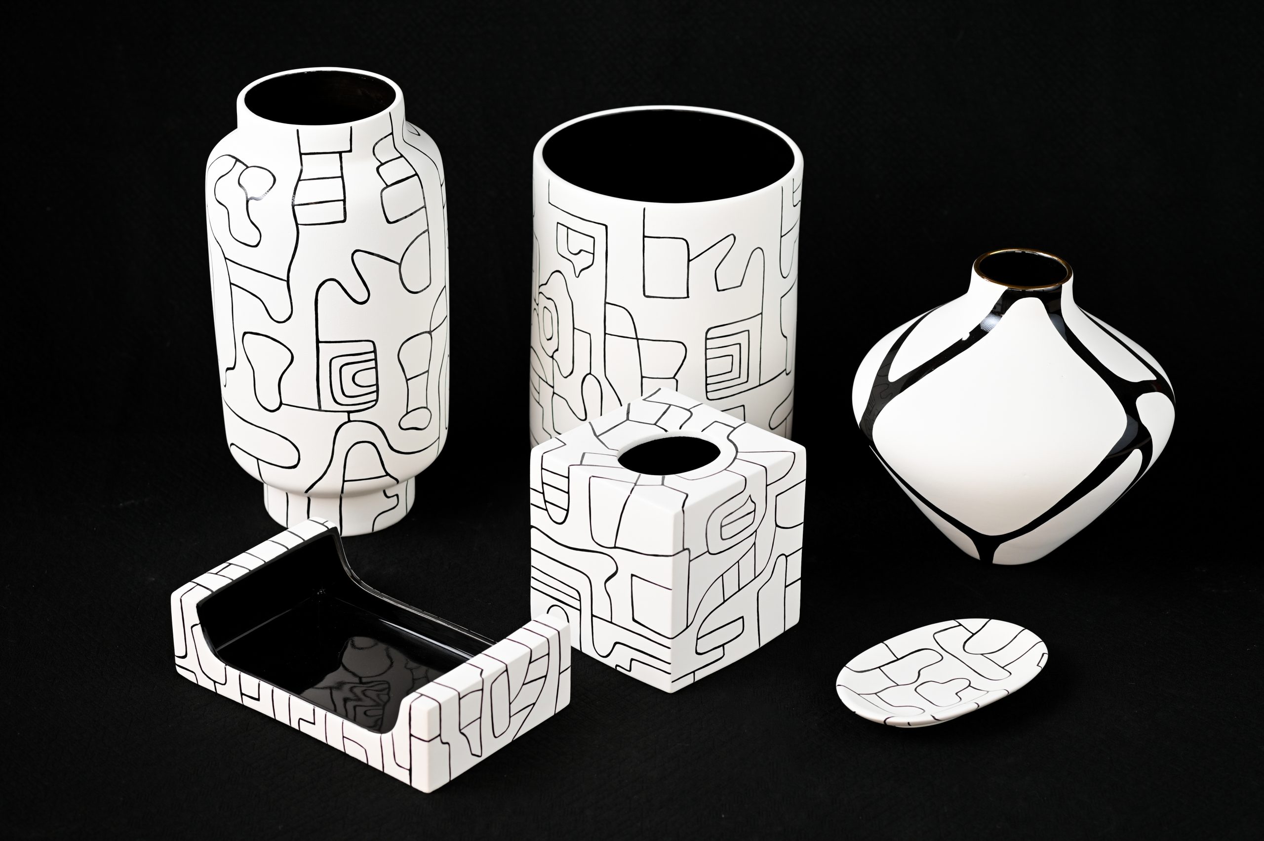 Handcrafted of signature ultra matte glazes on stoneware or porcelain with 22k gold details.