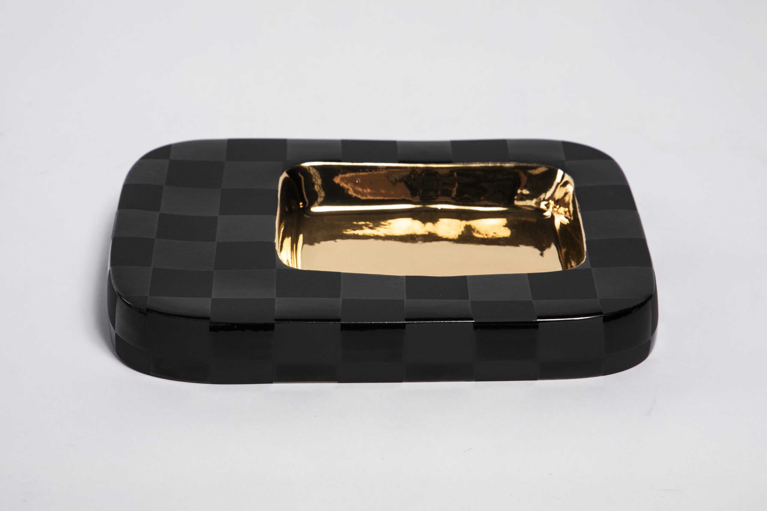 Handcrafted of signature ultra matte glazes on stoneware or porcelain with 22k gold details.