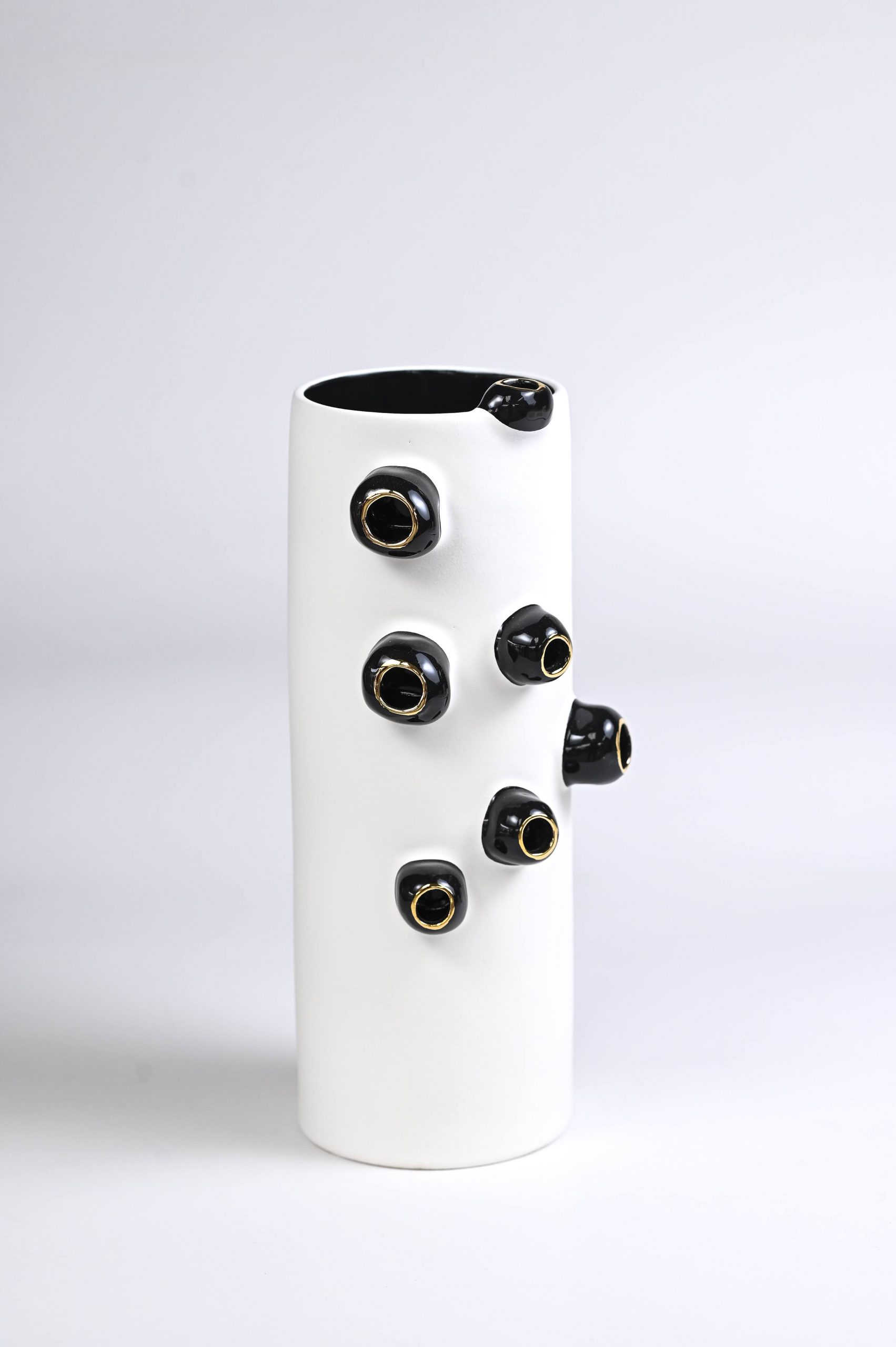 Handcrafted of signature ultra matte glazes on stoneware or porcelain with 22k gold details.