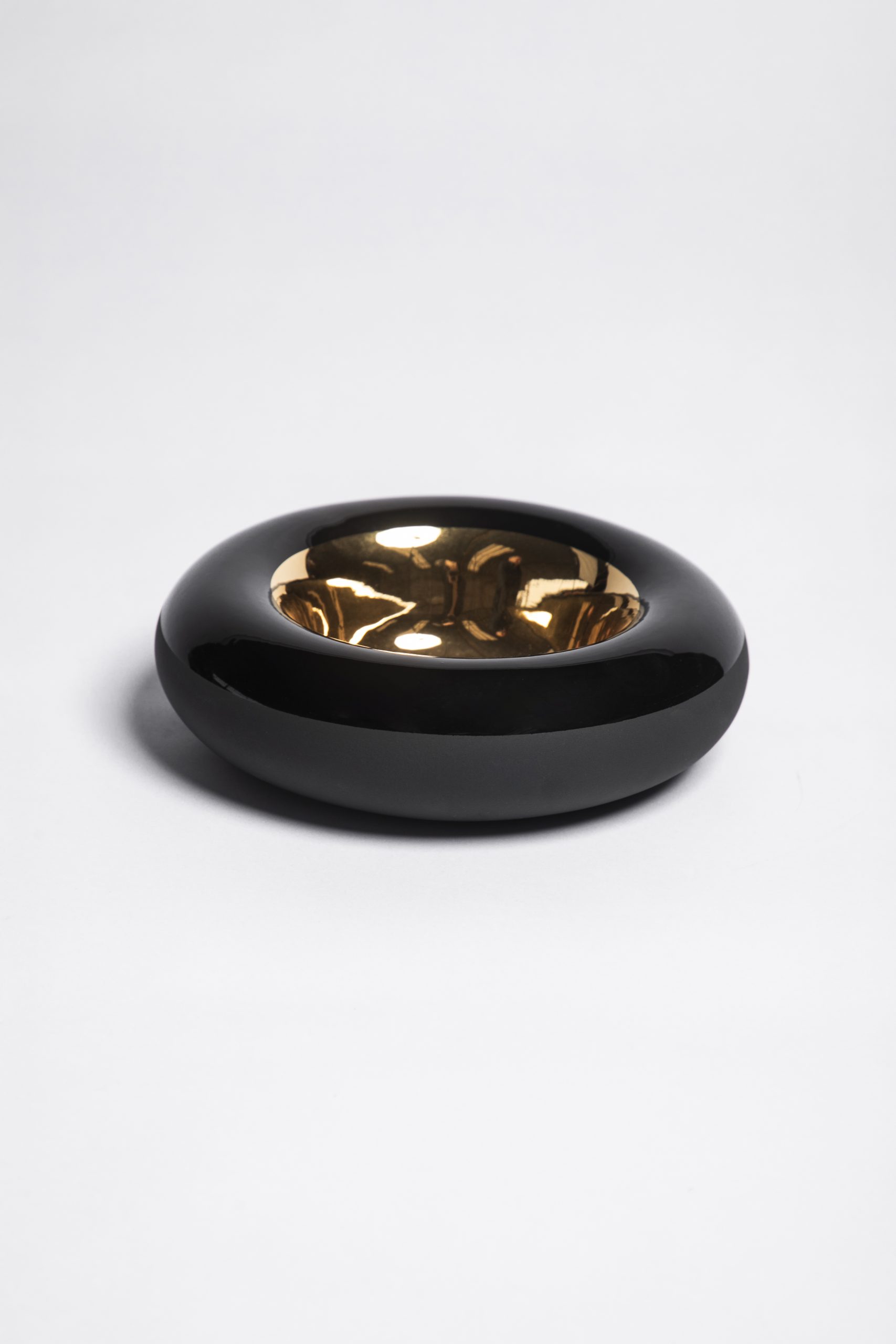 Handcrafted of signature ultra matte glazes on stoneware or porcelain with 22k gold details.