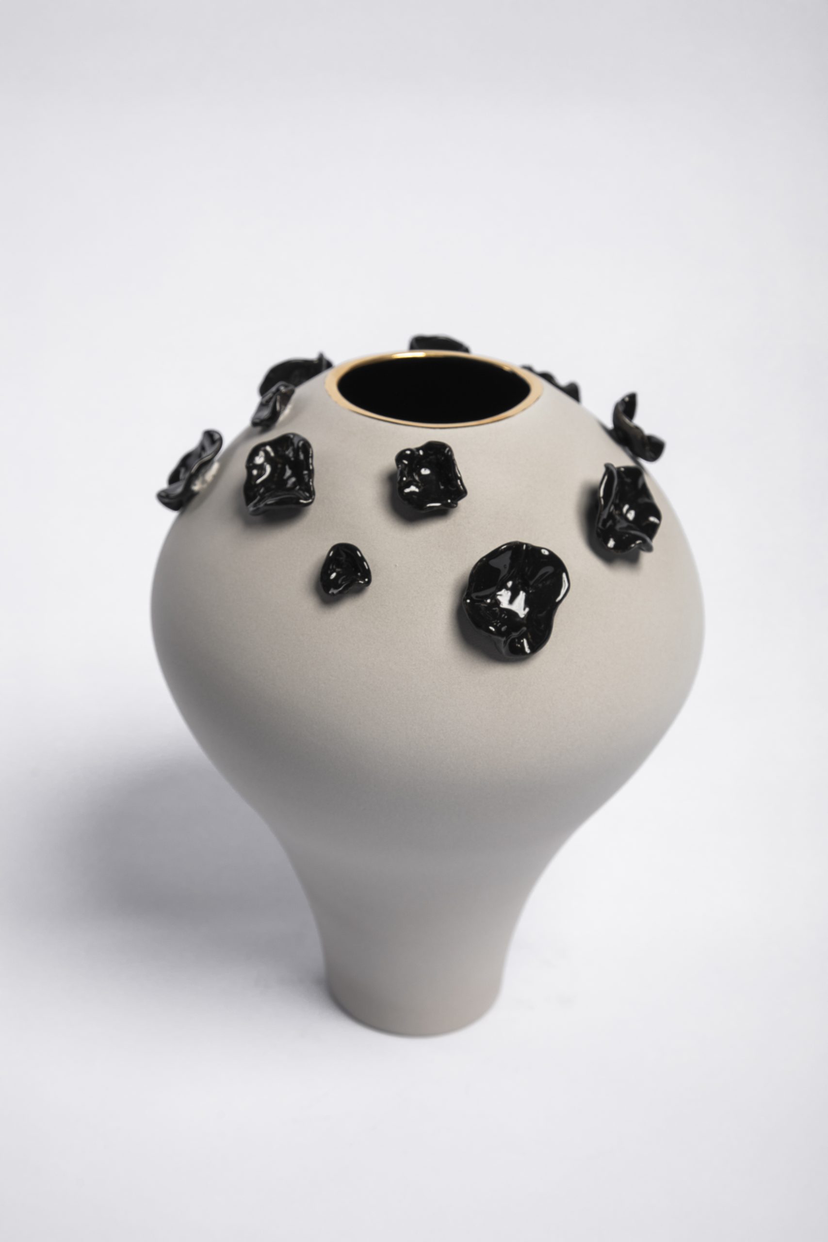 Handcrafted of signature ultra matte glazes on stoneware or porcelain with 22k gold details.