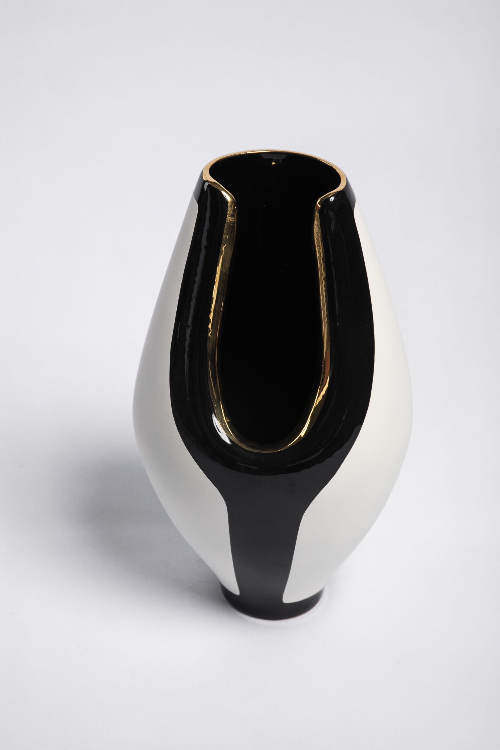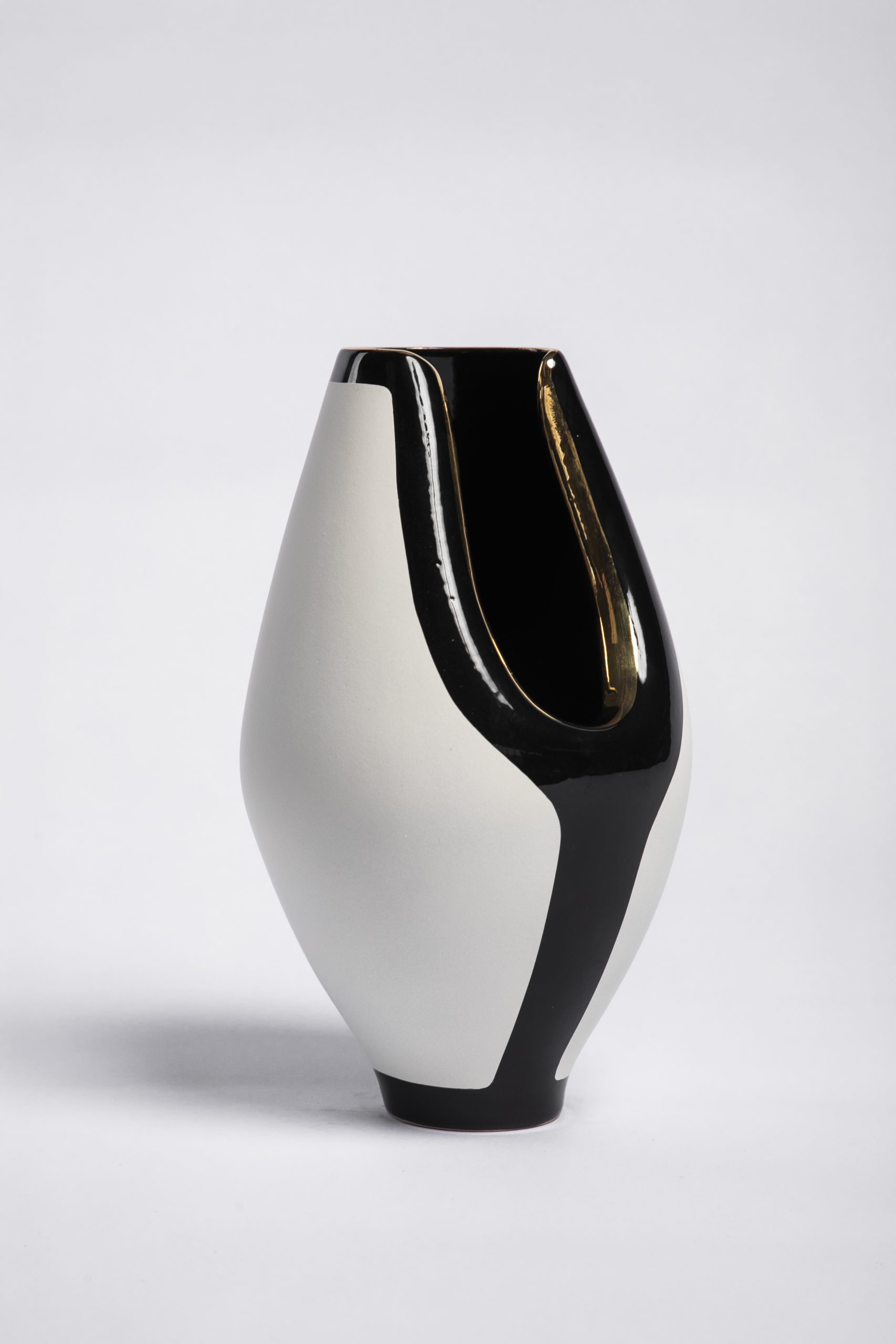 Handcrafted of signature ultra matte glazes on stoneware or porcelain with 22k gold details.