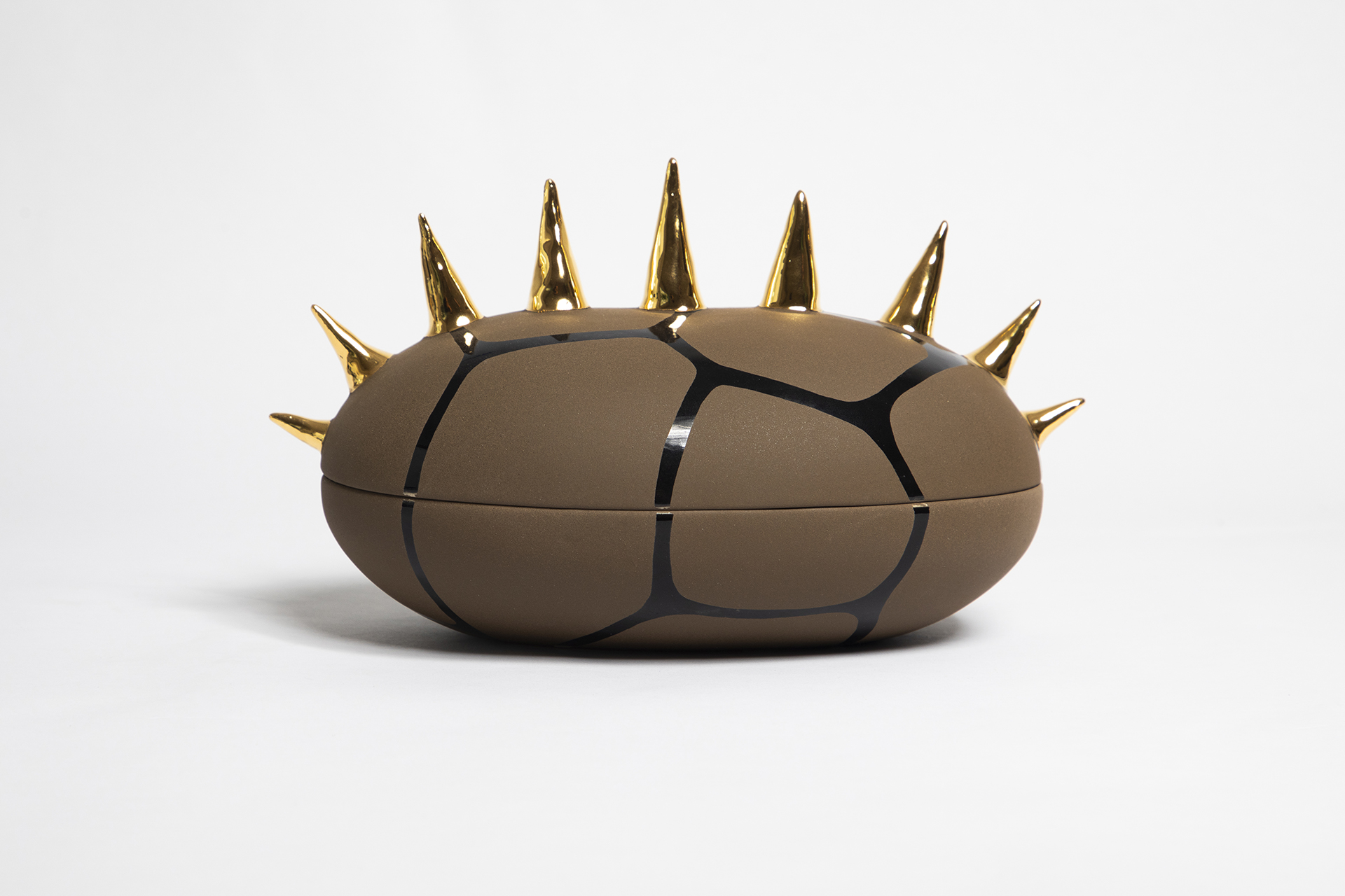 Handcrafted of signature ultra matte glazes on stoneware or porcelain with 22k gold details.
