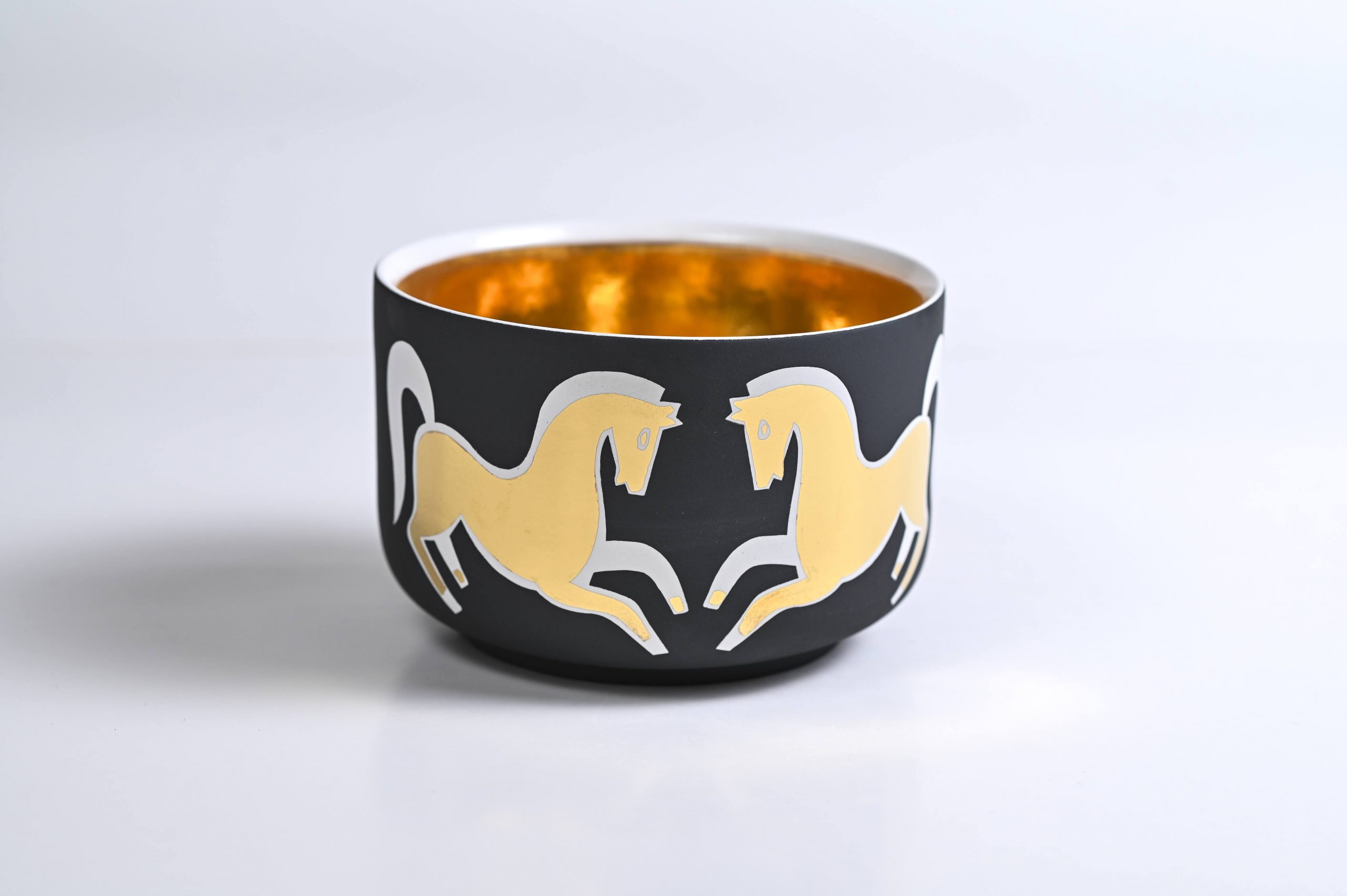 Handcrafted of signature ultra matte glazes on stoneware or porcelain with 22k gold details.