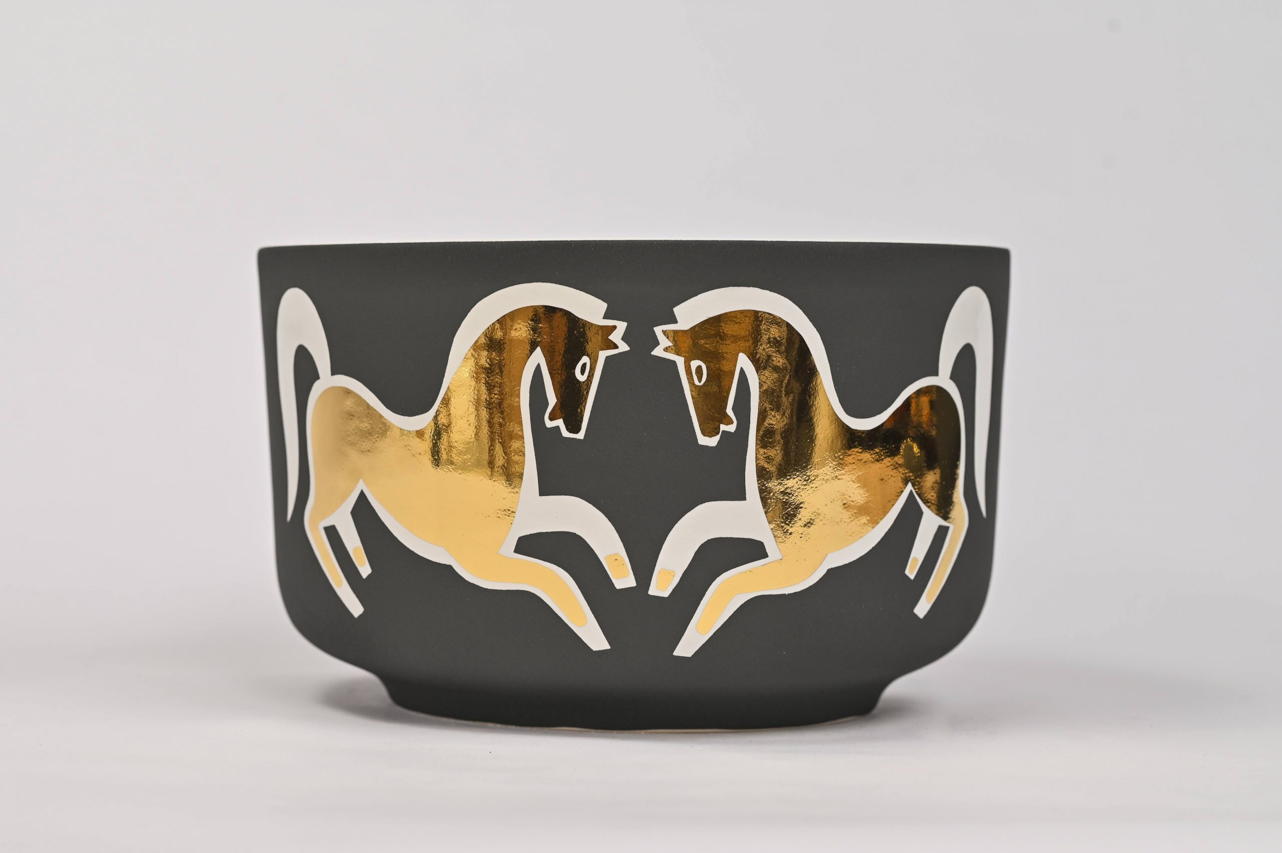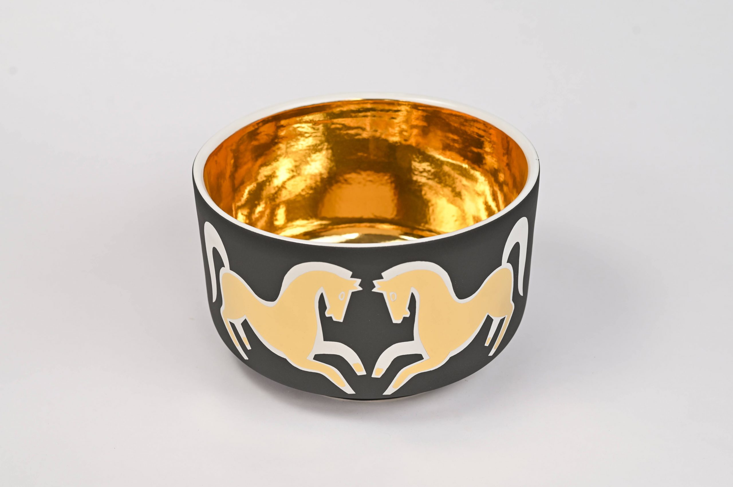 Handcrafted of signature ultra matte glazes on stoneware or porcelain with 22k gold details.