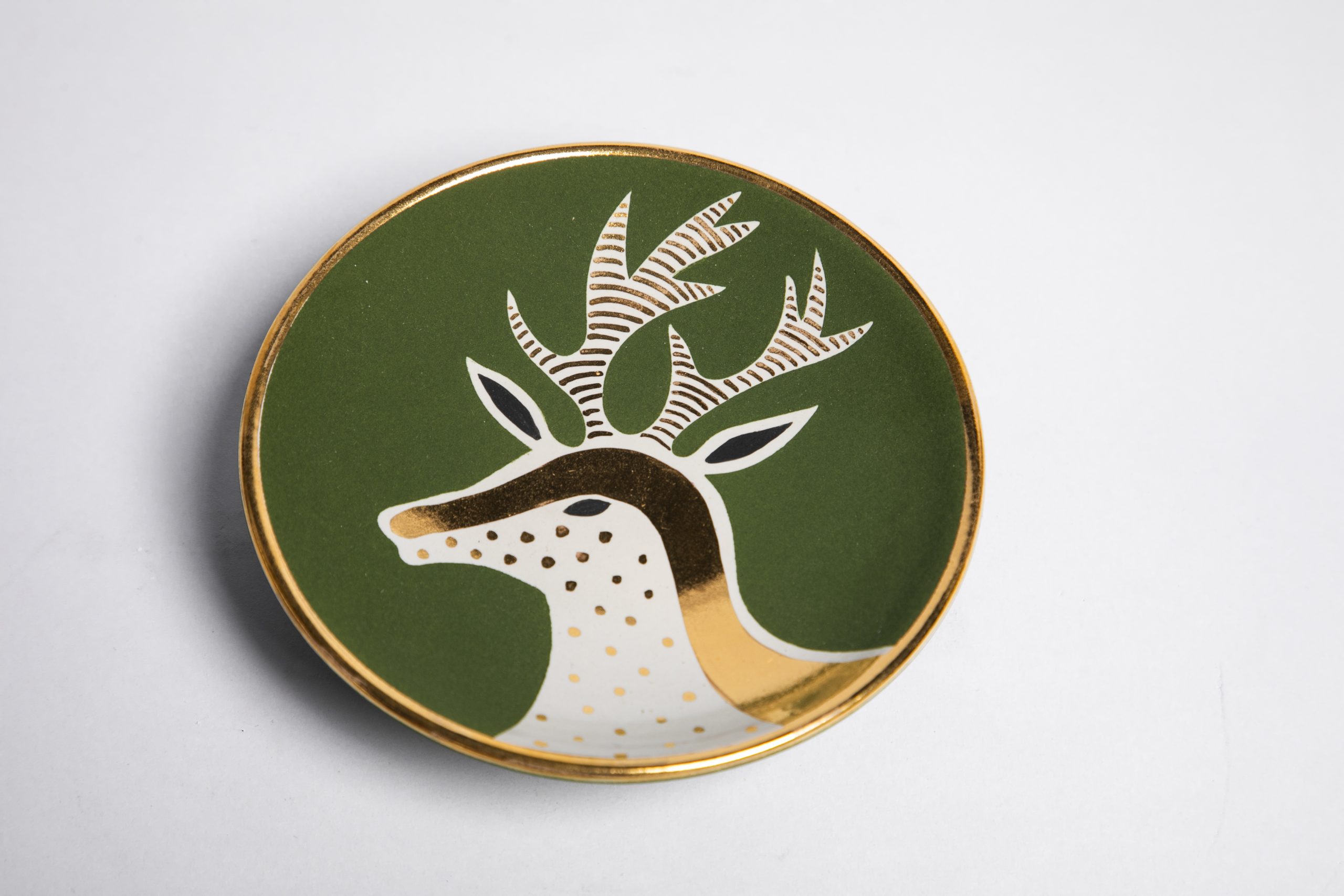 Handcrafted of signature ultra matte glazes on stoneware or porcelain with 22k gold details.