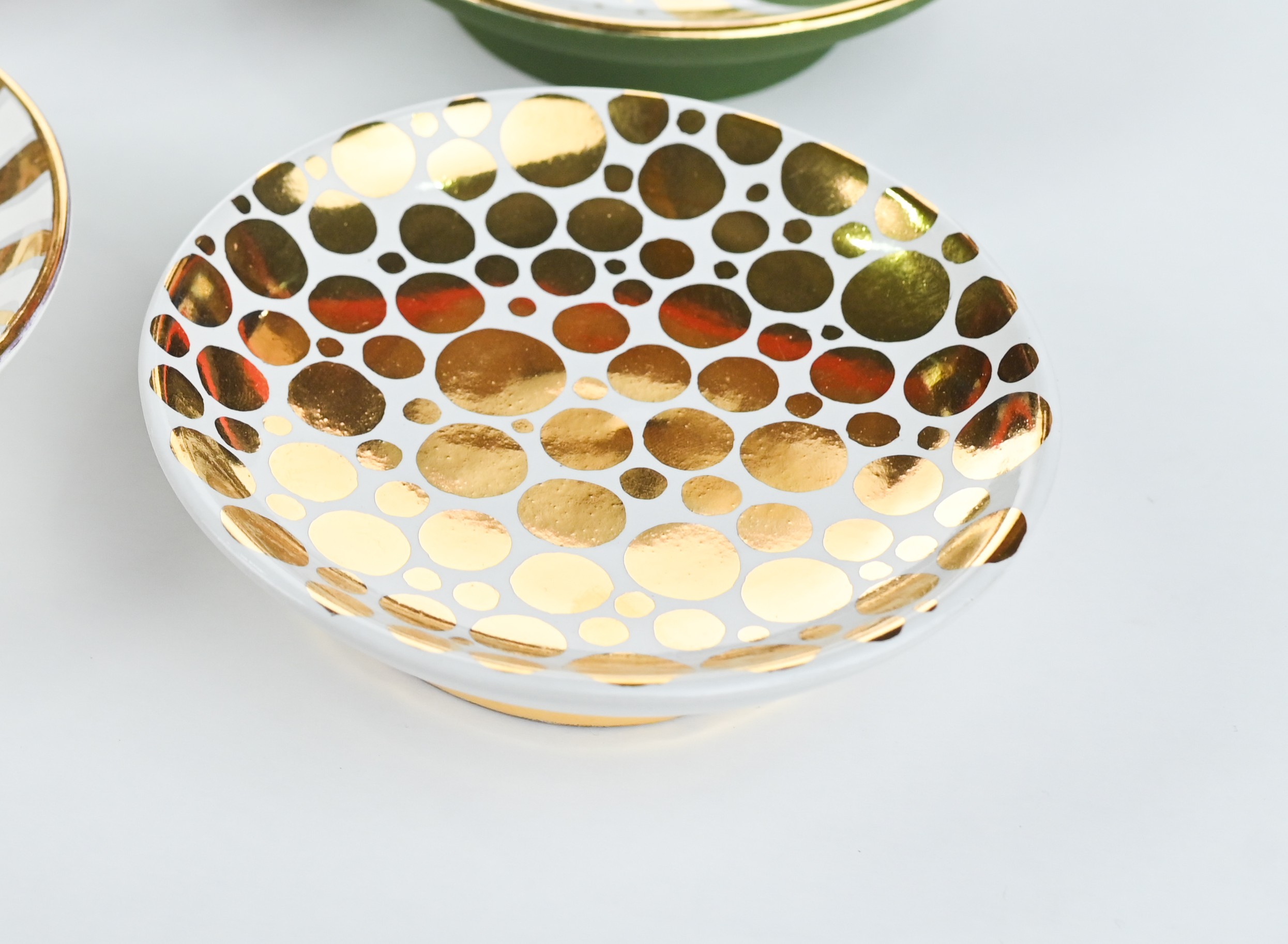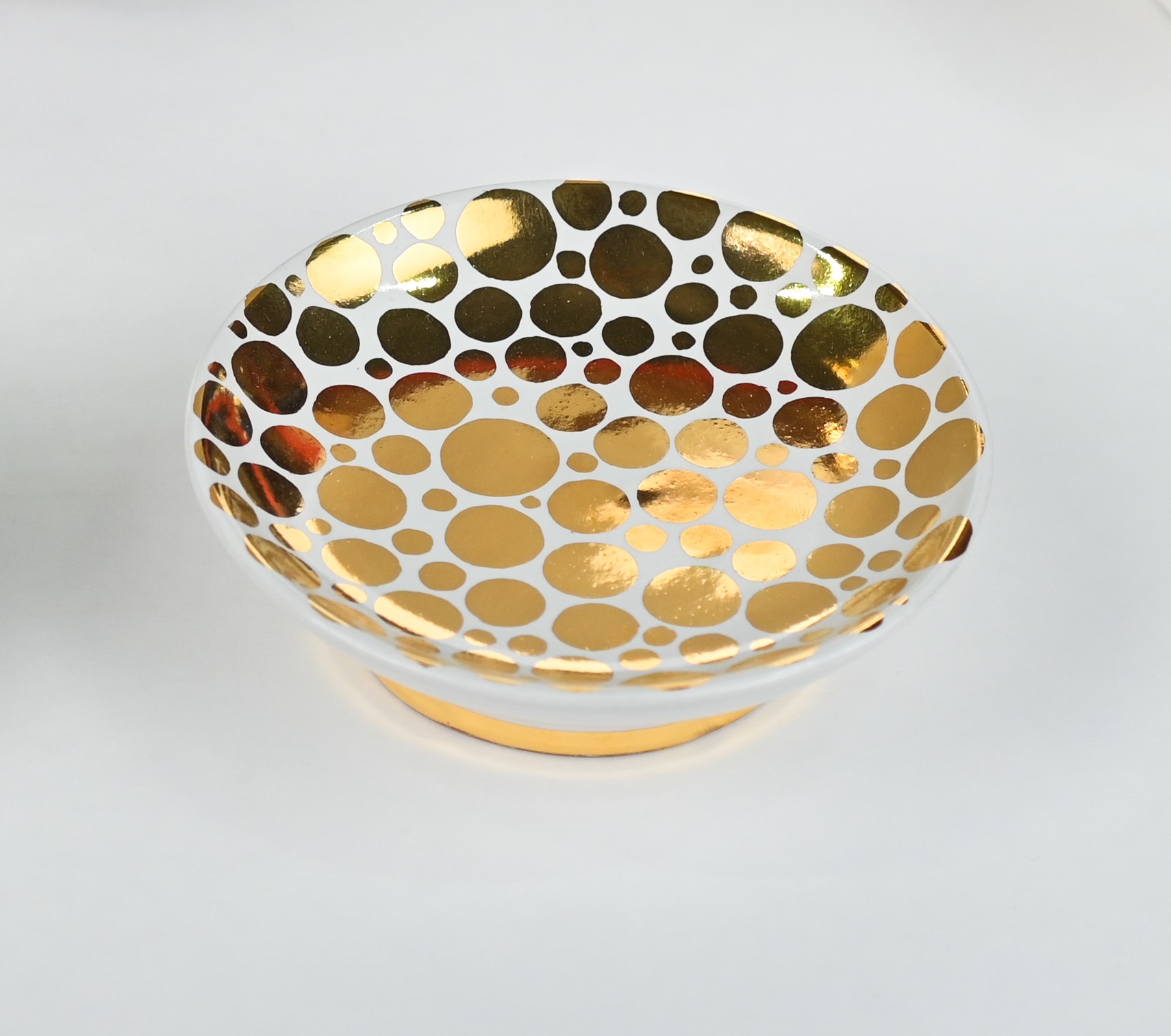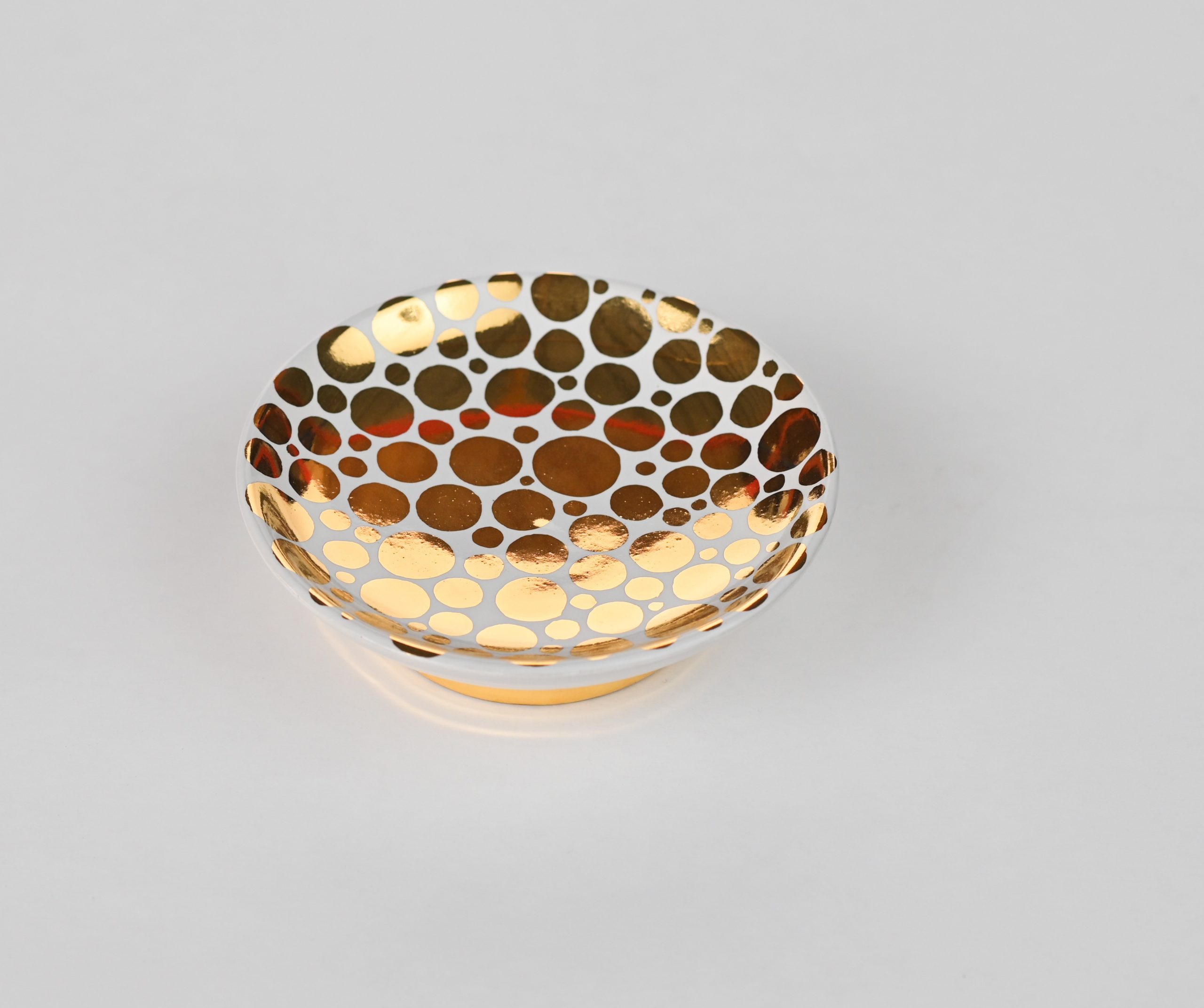 Handcrafted of signature ultra matte glazes on stoneware or porcelain with 22k gold details.