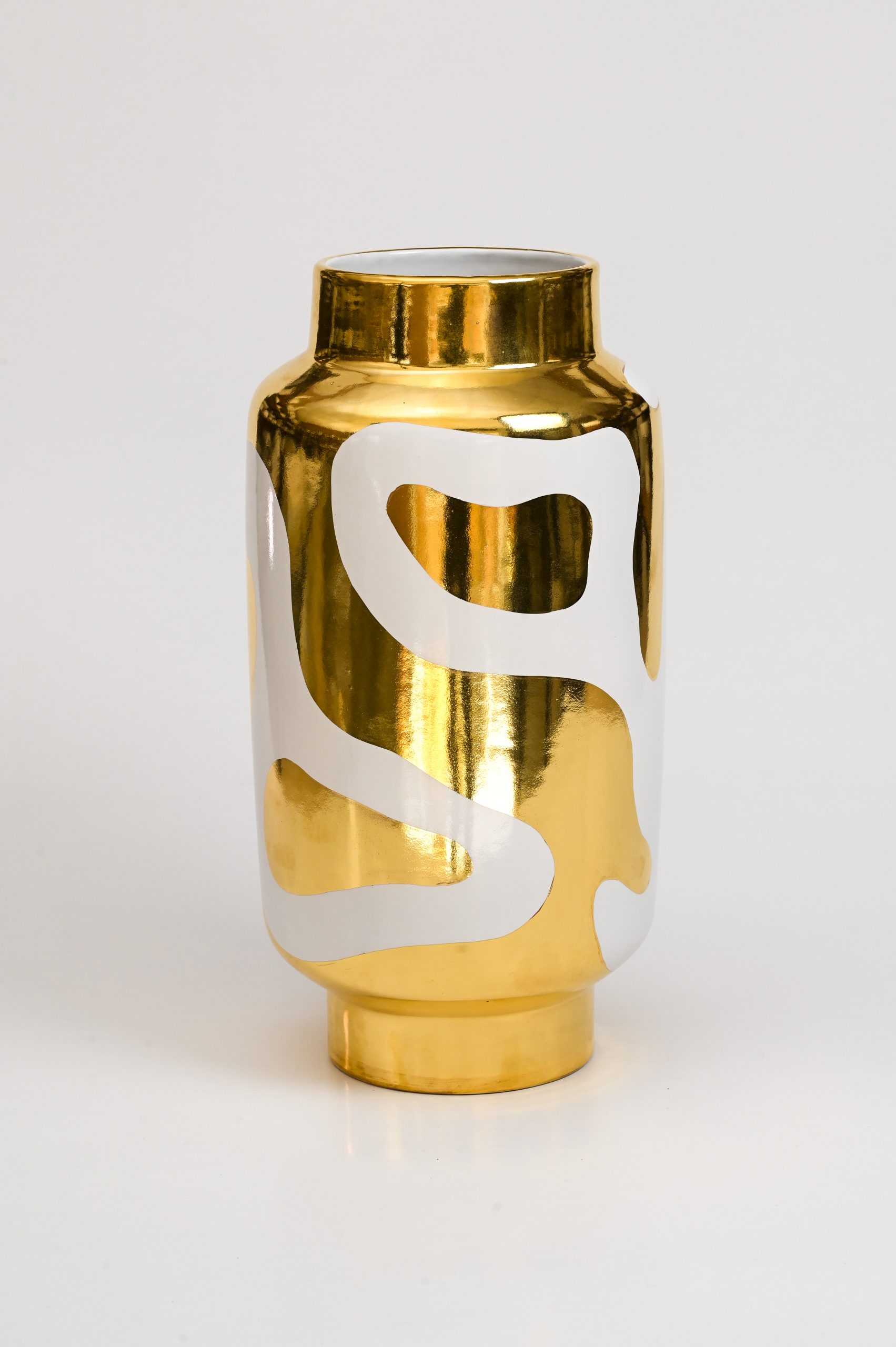 Handcrafted of signature ultra matte glazes on stoneware or porcelain with 22k gold details.