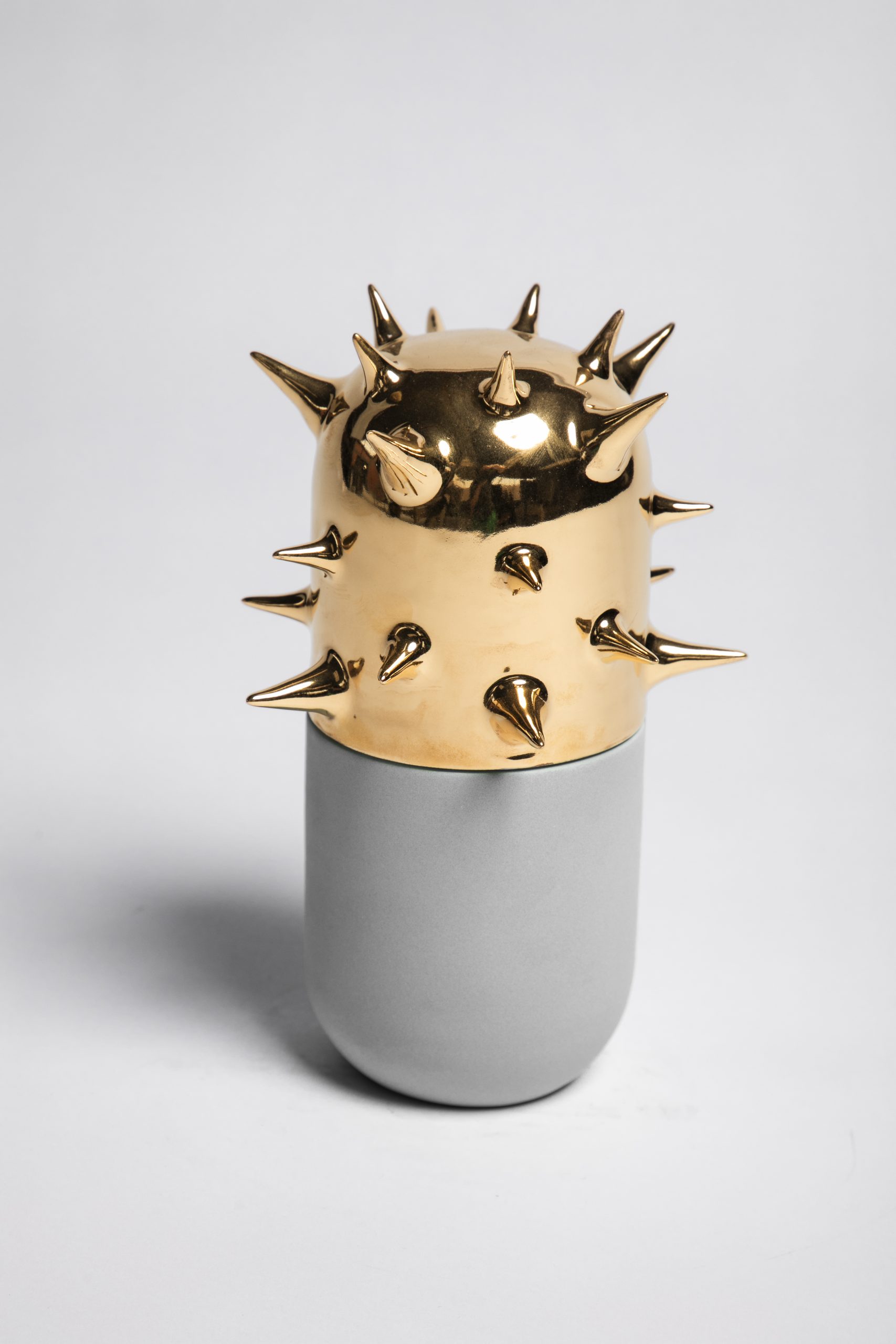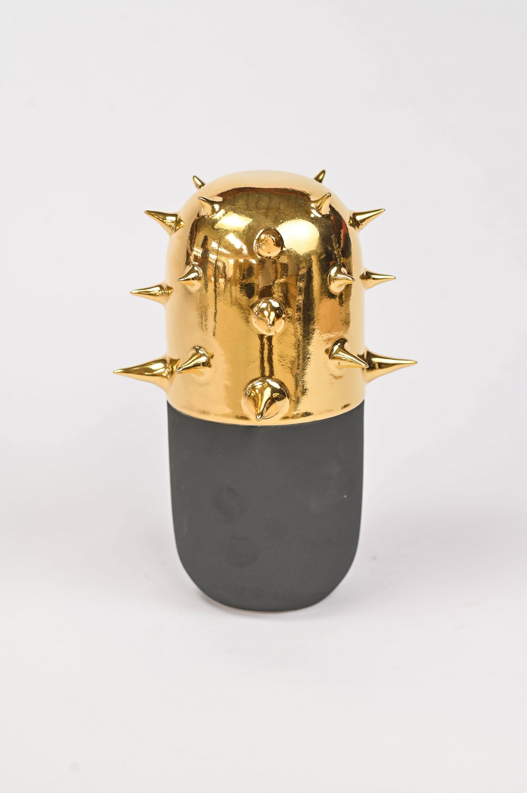 Handcrafted of signature ultra matte glazes on stoneware or porcelain with 22k gold details.
