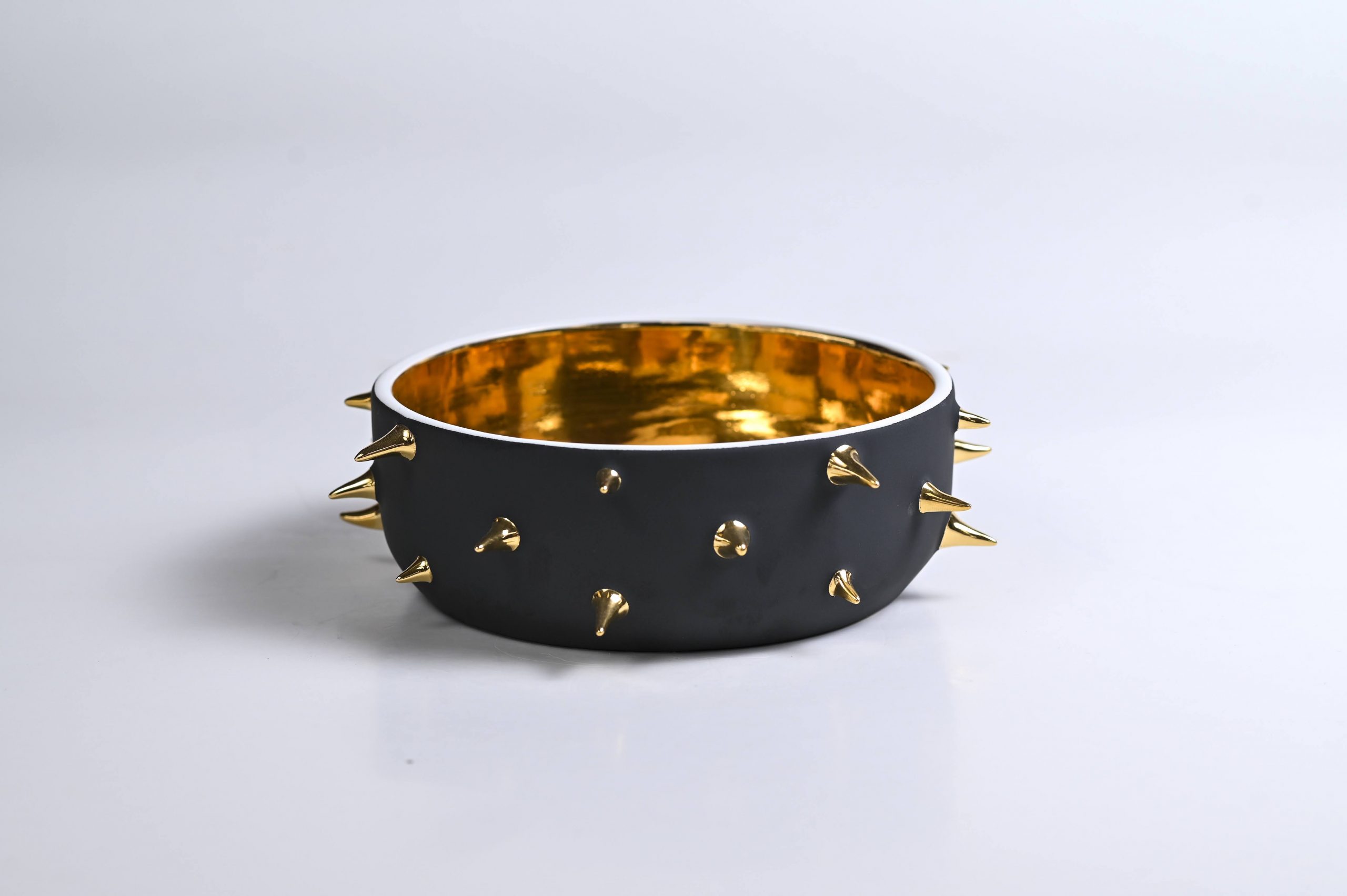 Handcrafted of signature ultra matte glazes on stoneware or porcelain with 22k gold details.