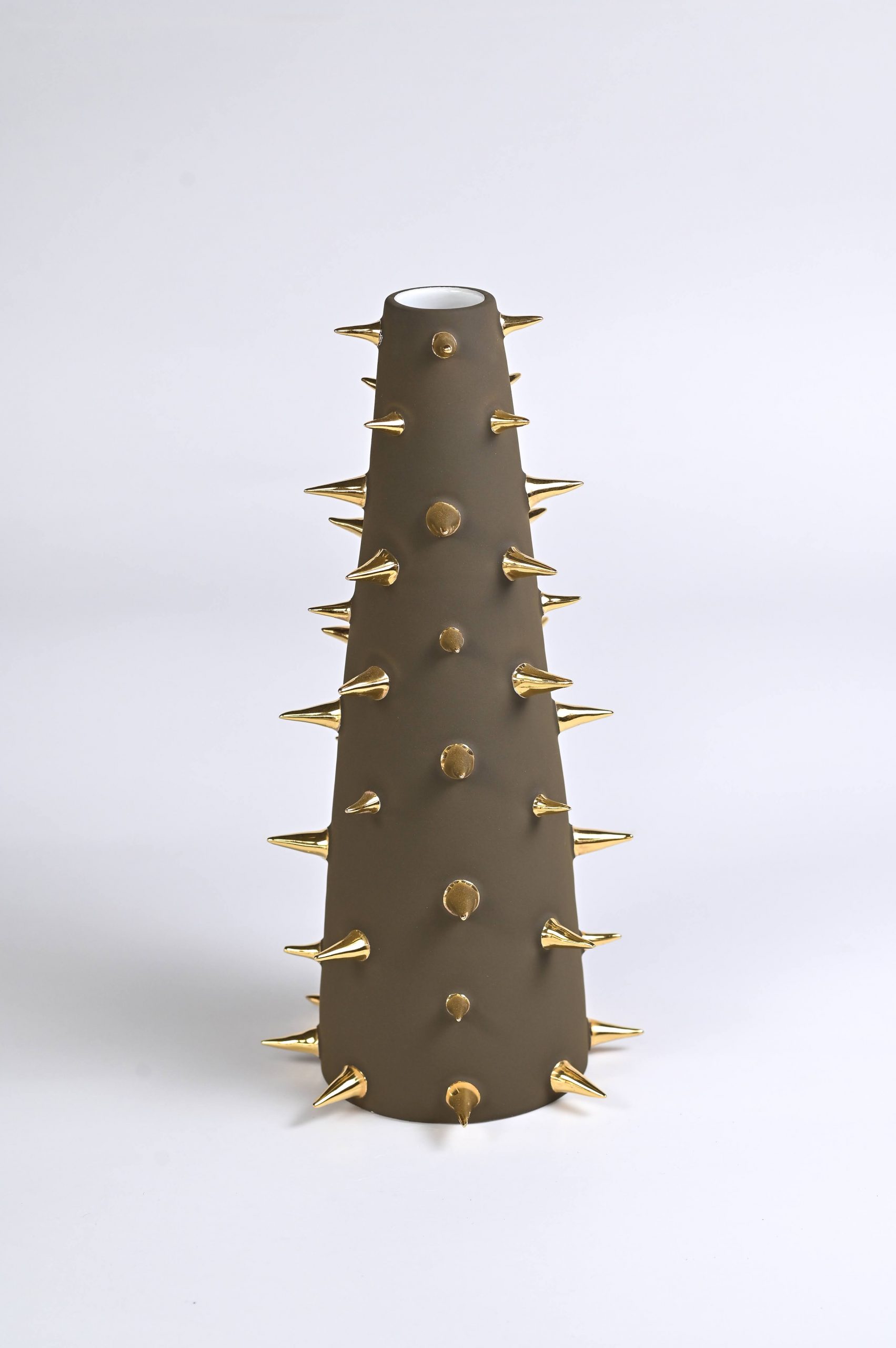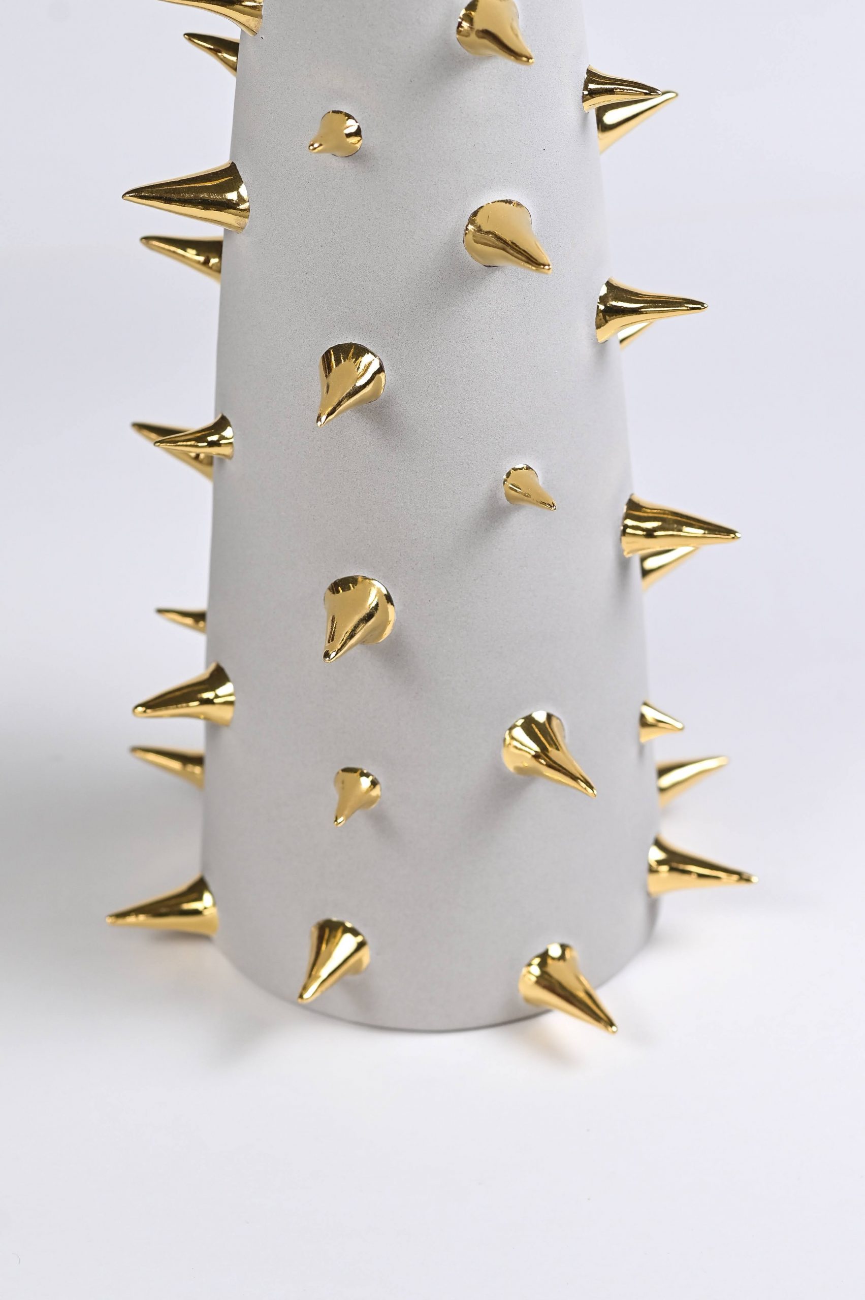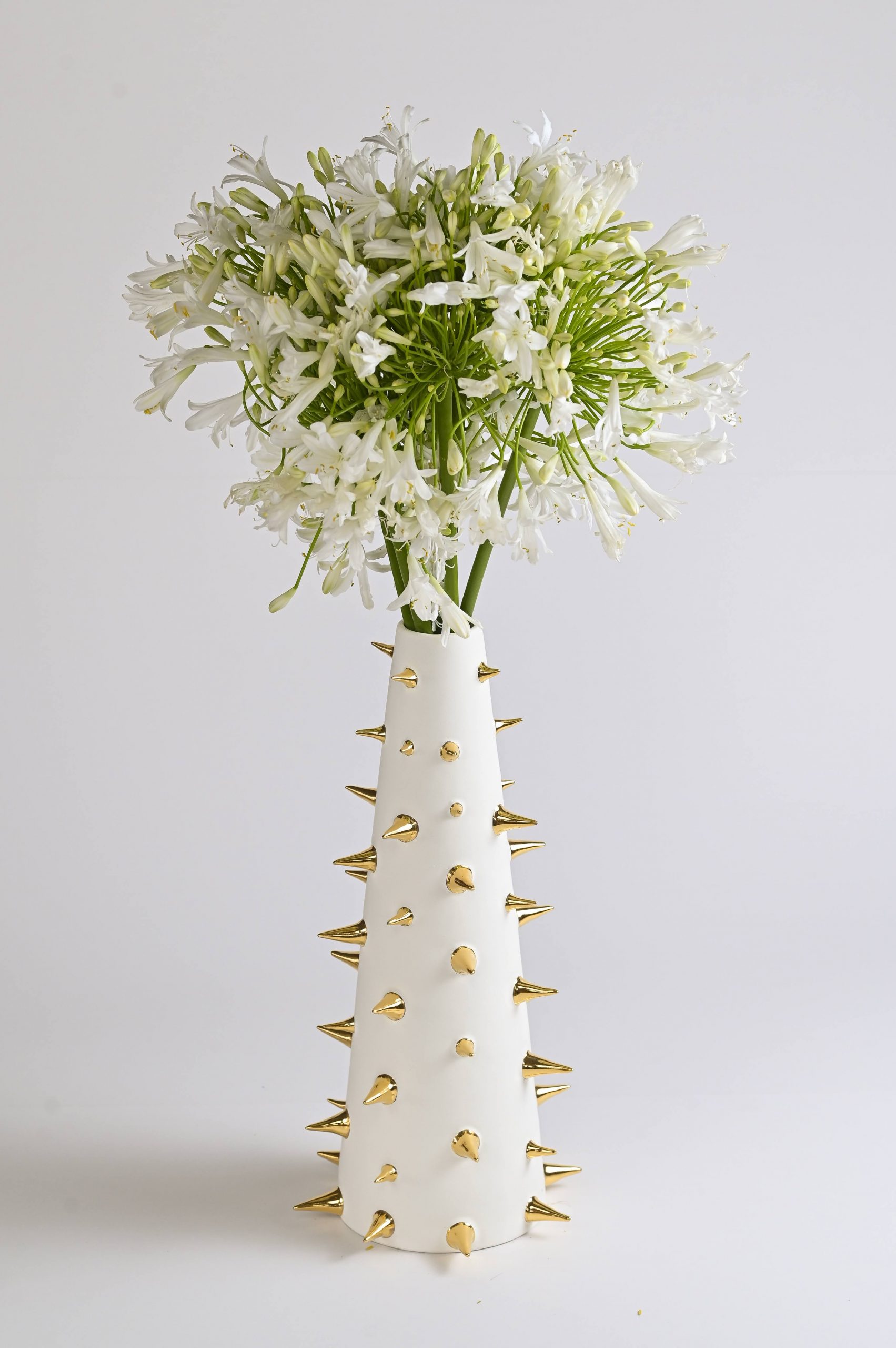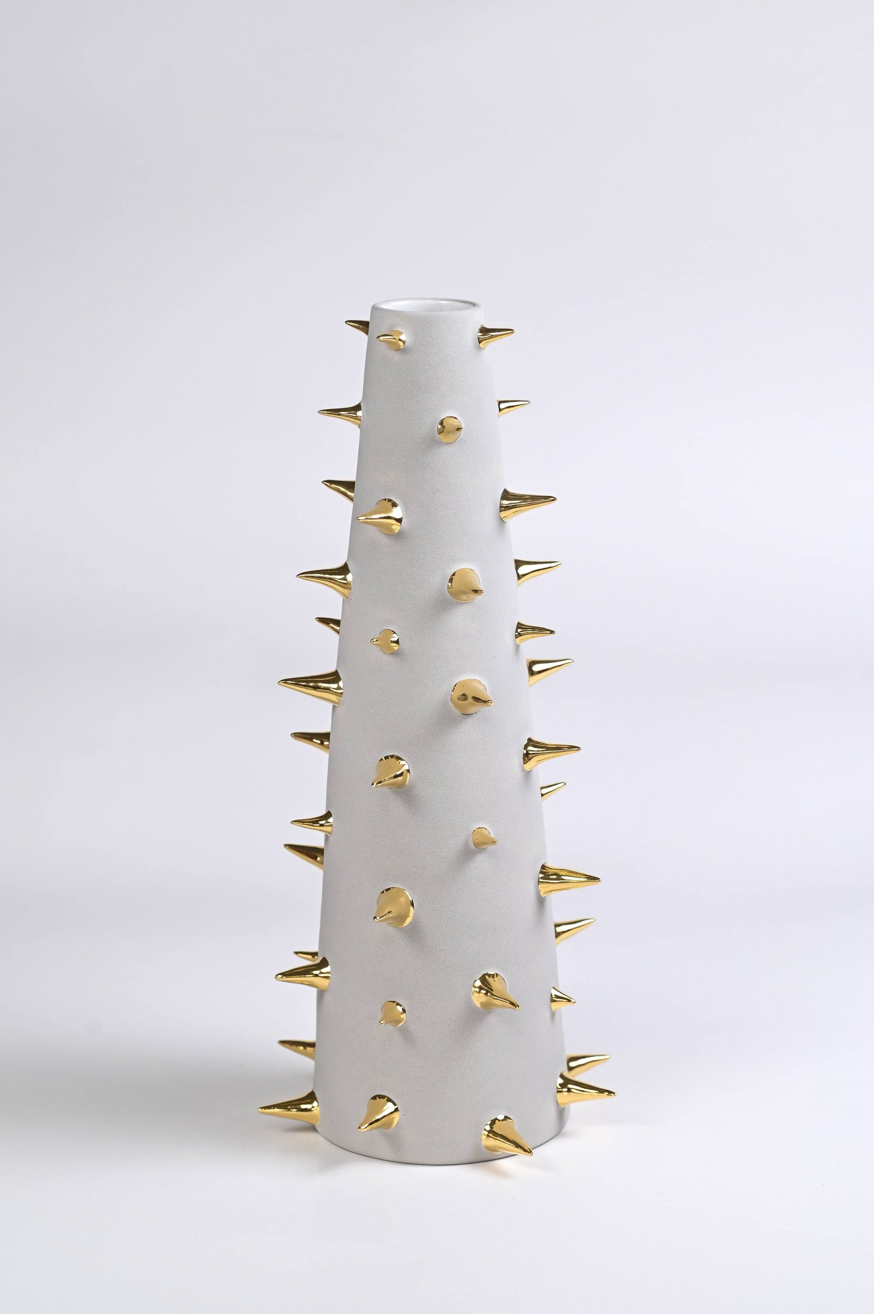 Handcrafted of signature ultra matte glazes on stoneware or porcelain with 22k gold details.