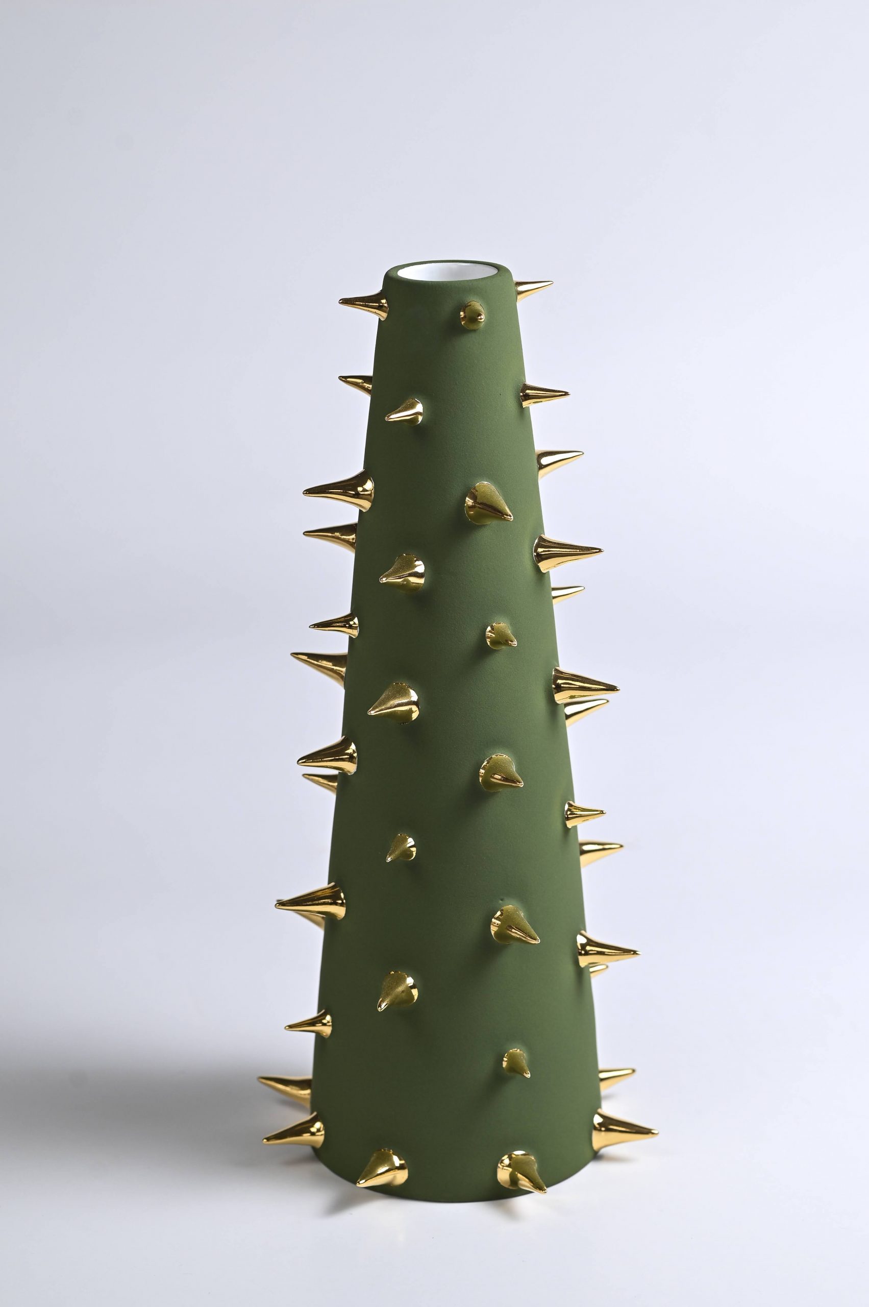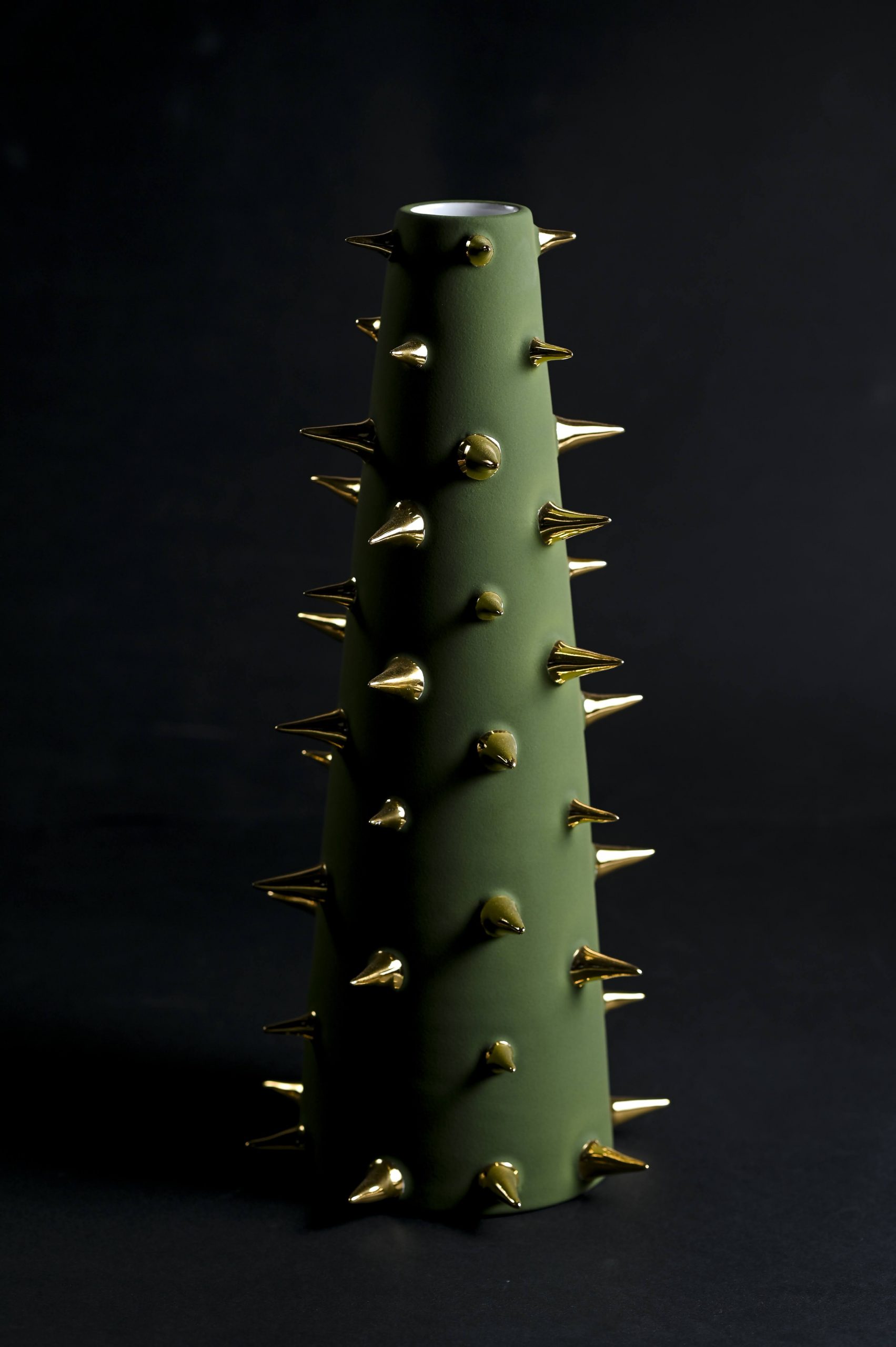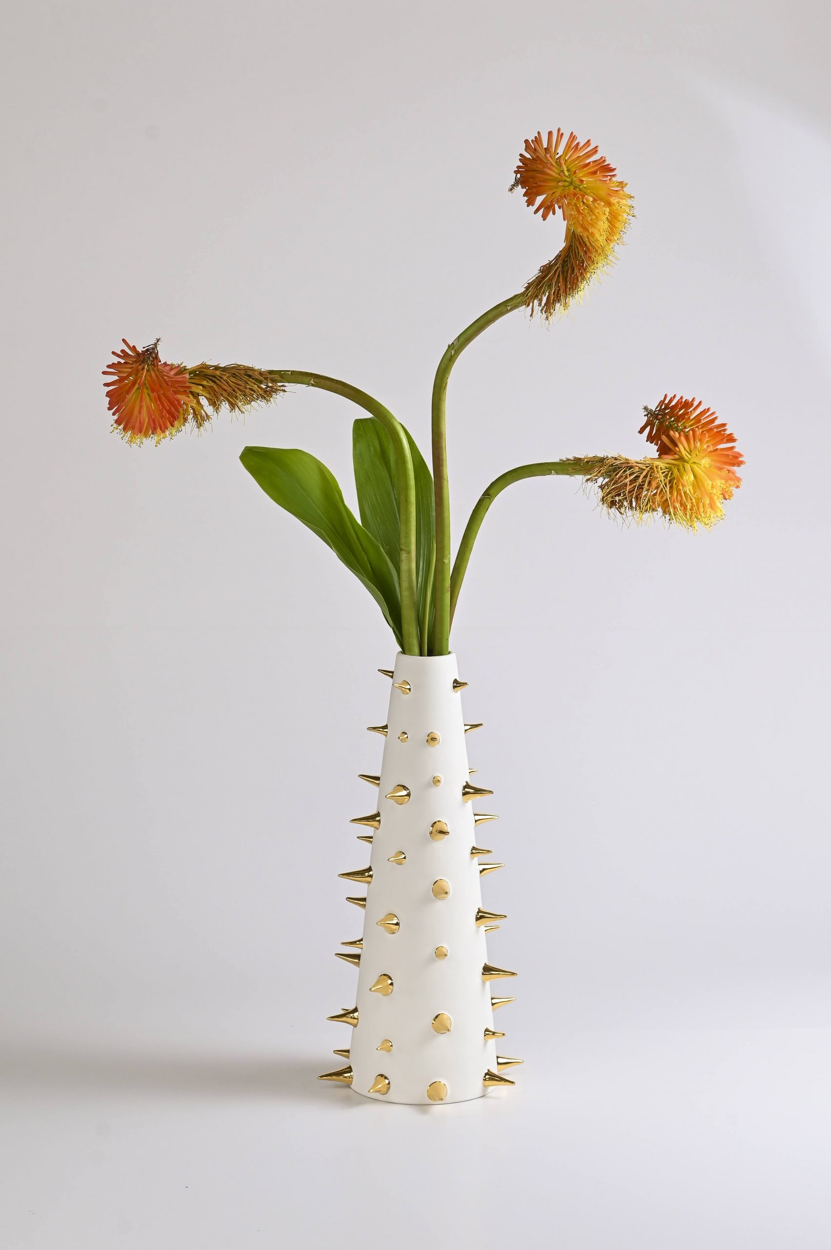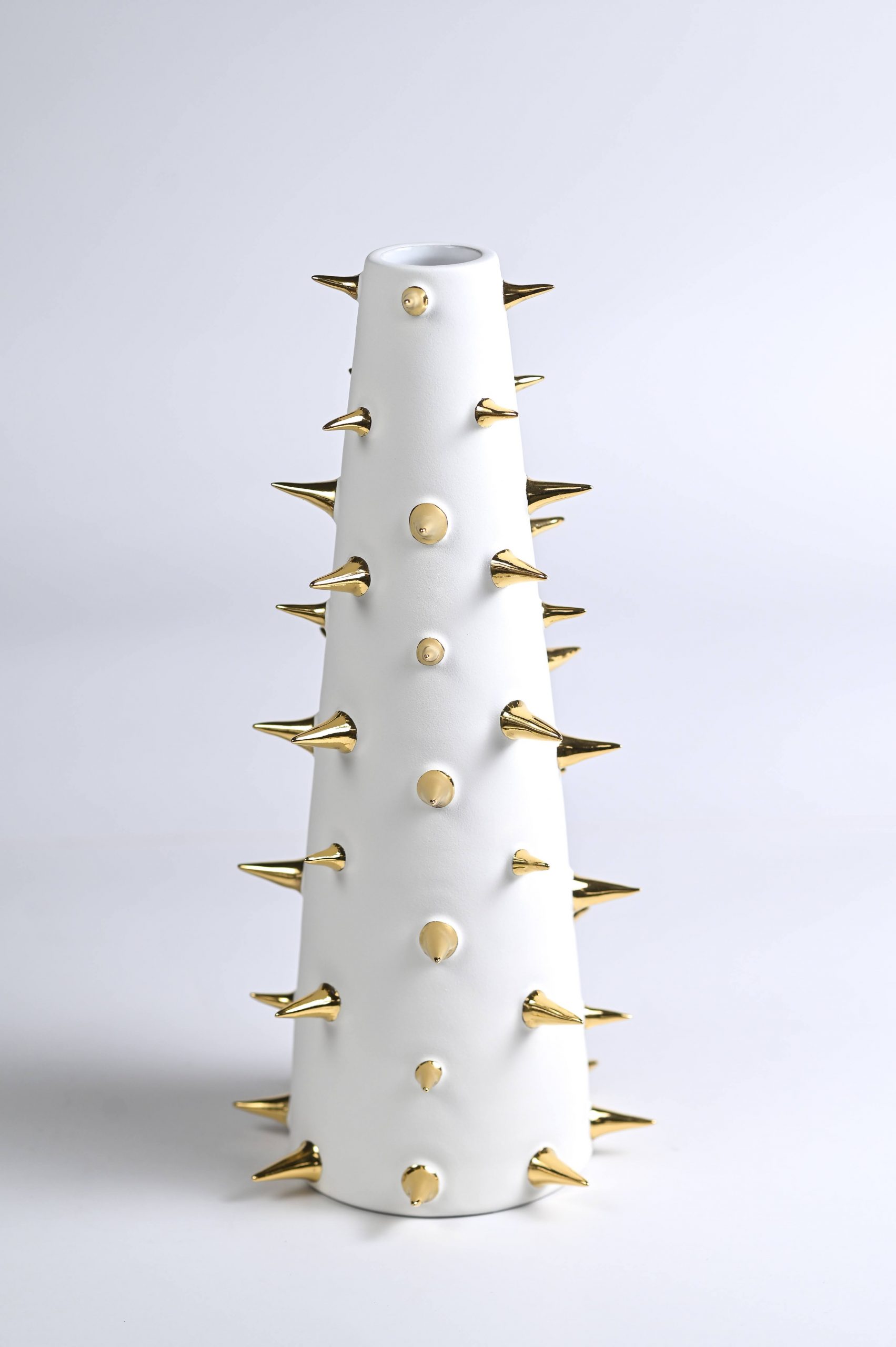 Handcrafted of signature ultra matte glazes on stoneware or porcelain with 22k gold details.