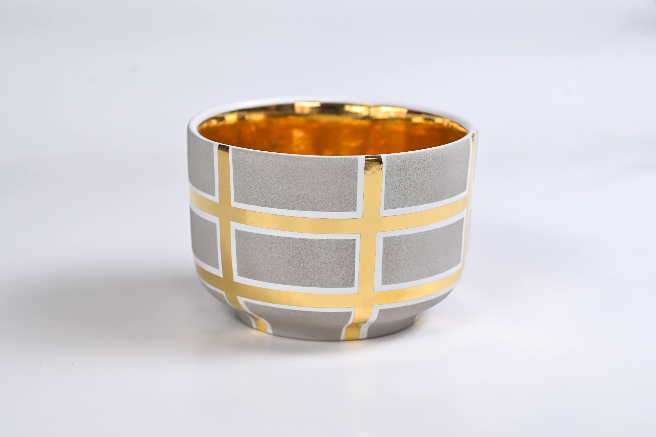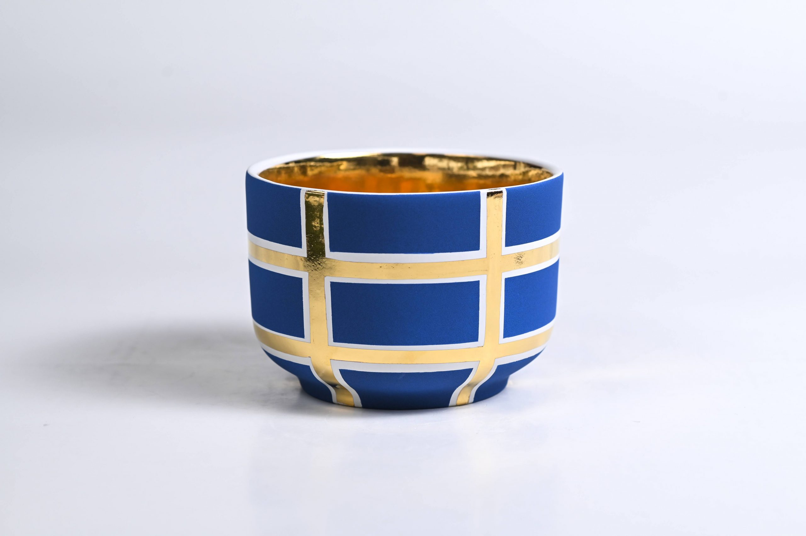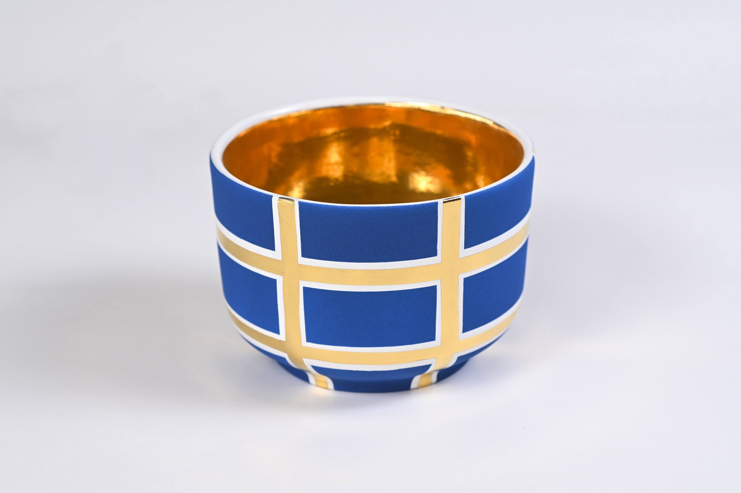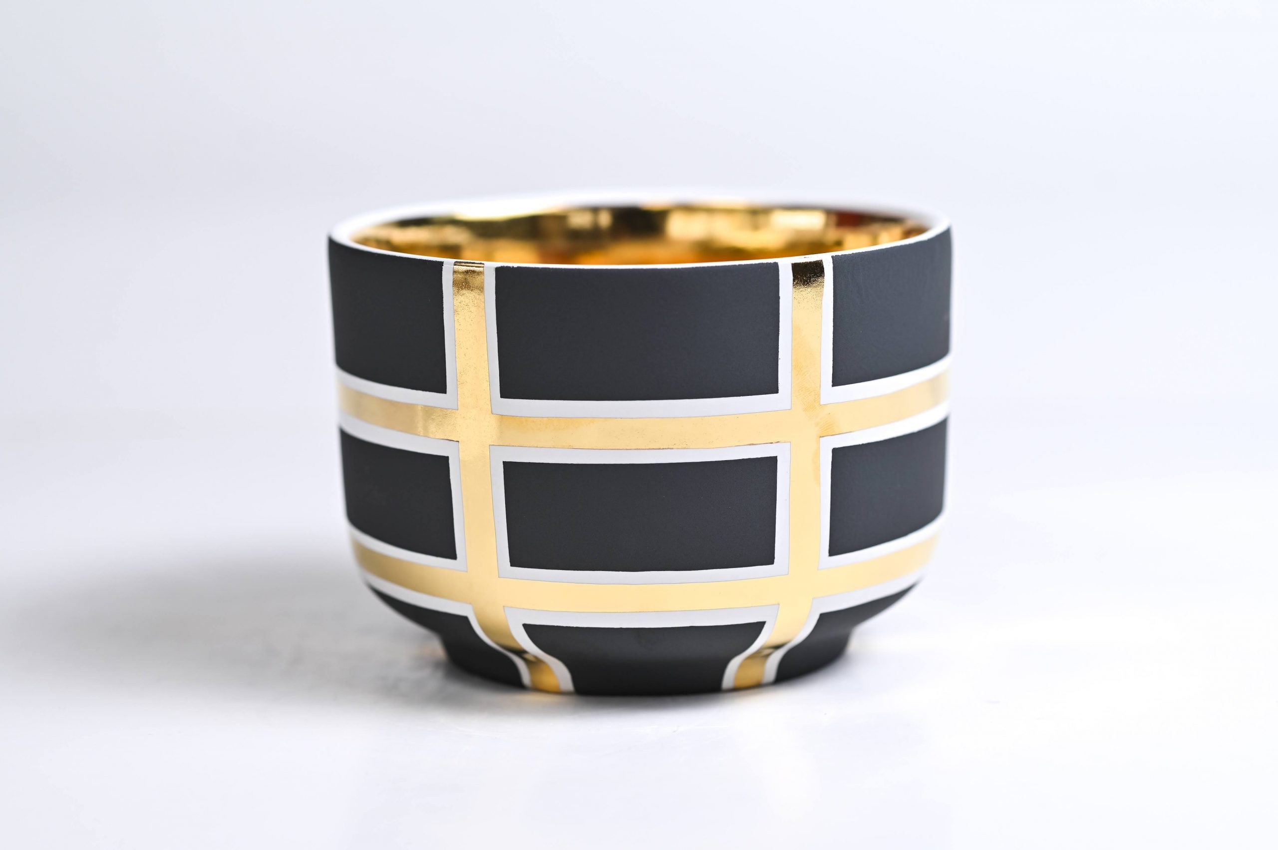 Handcrafted of signature ultra matte glazes on stoneware or porcelain with 22k gold details.