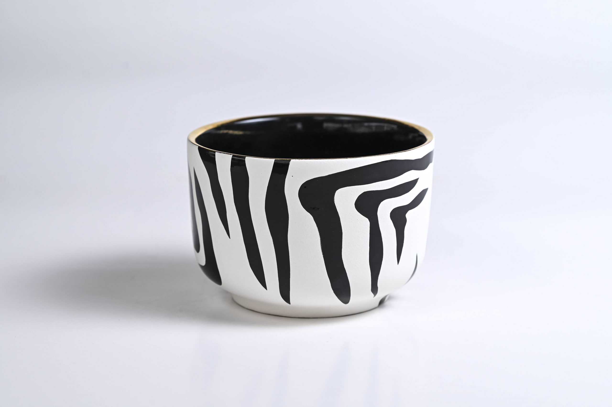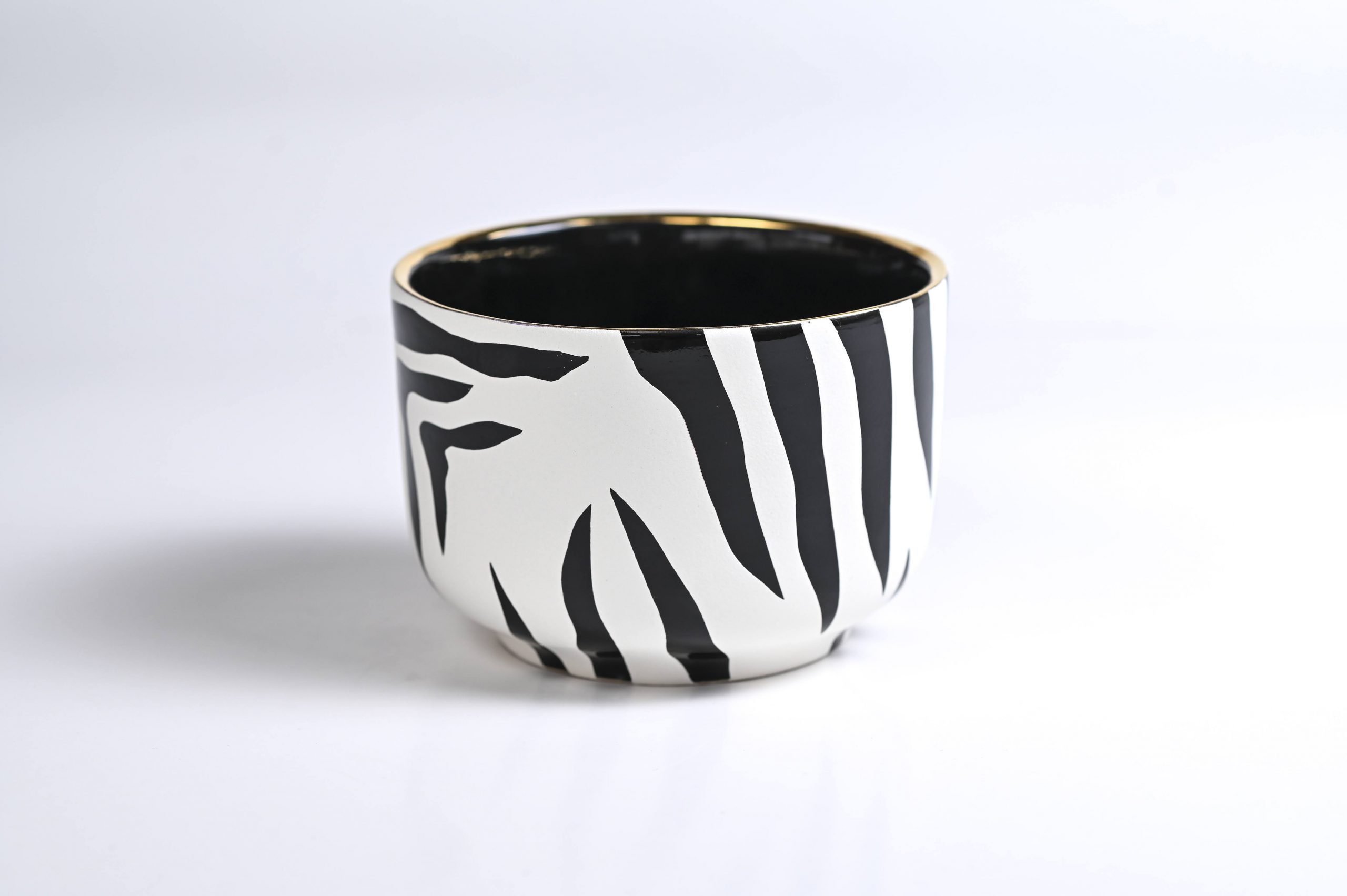 Best selling small “chubby” bowl in glossy black tiger stripes.