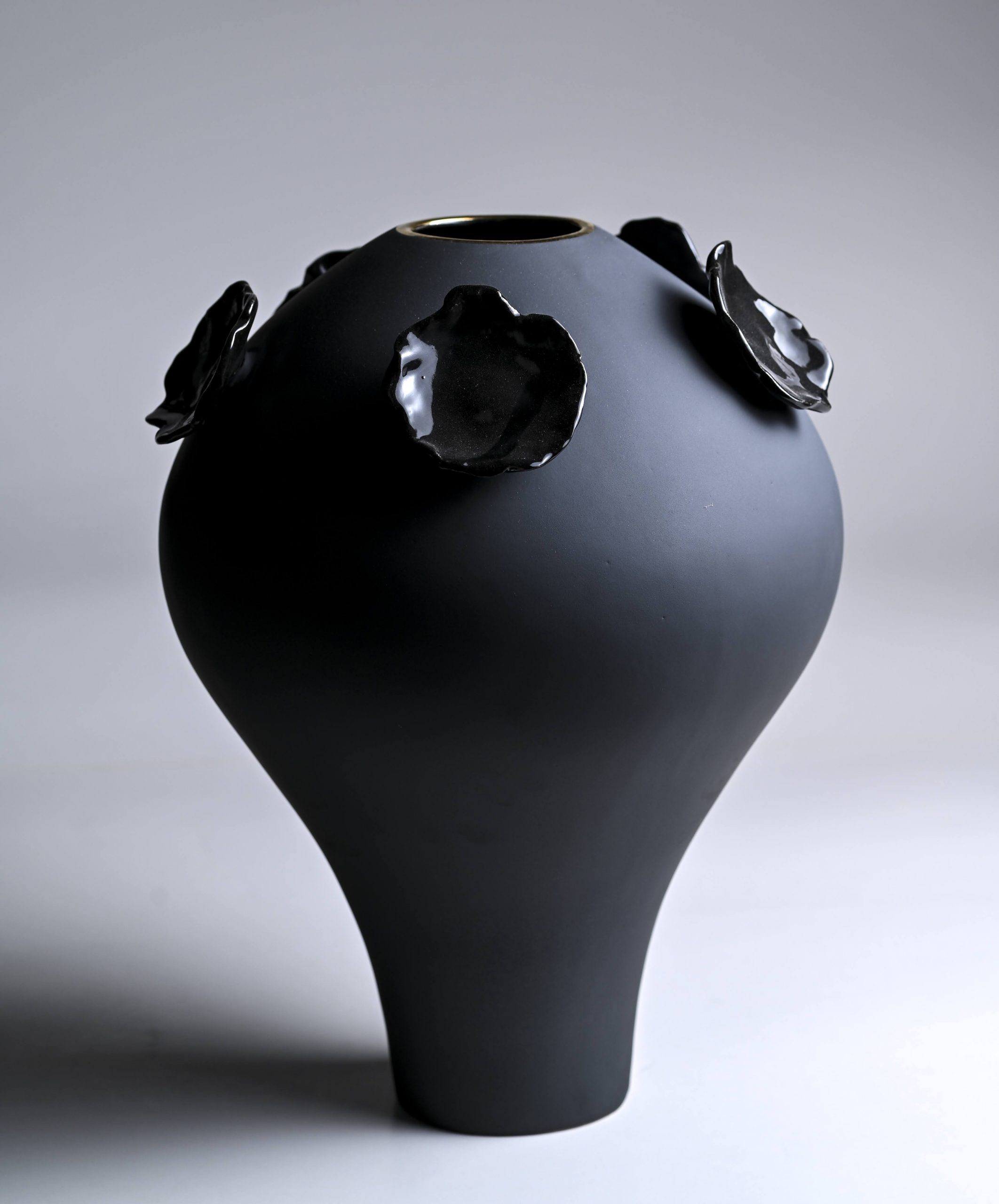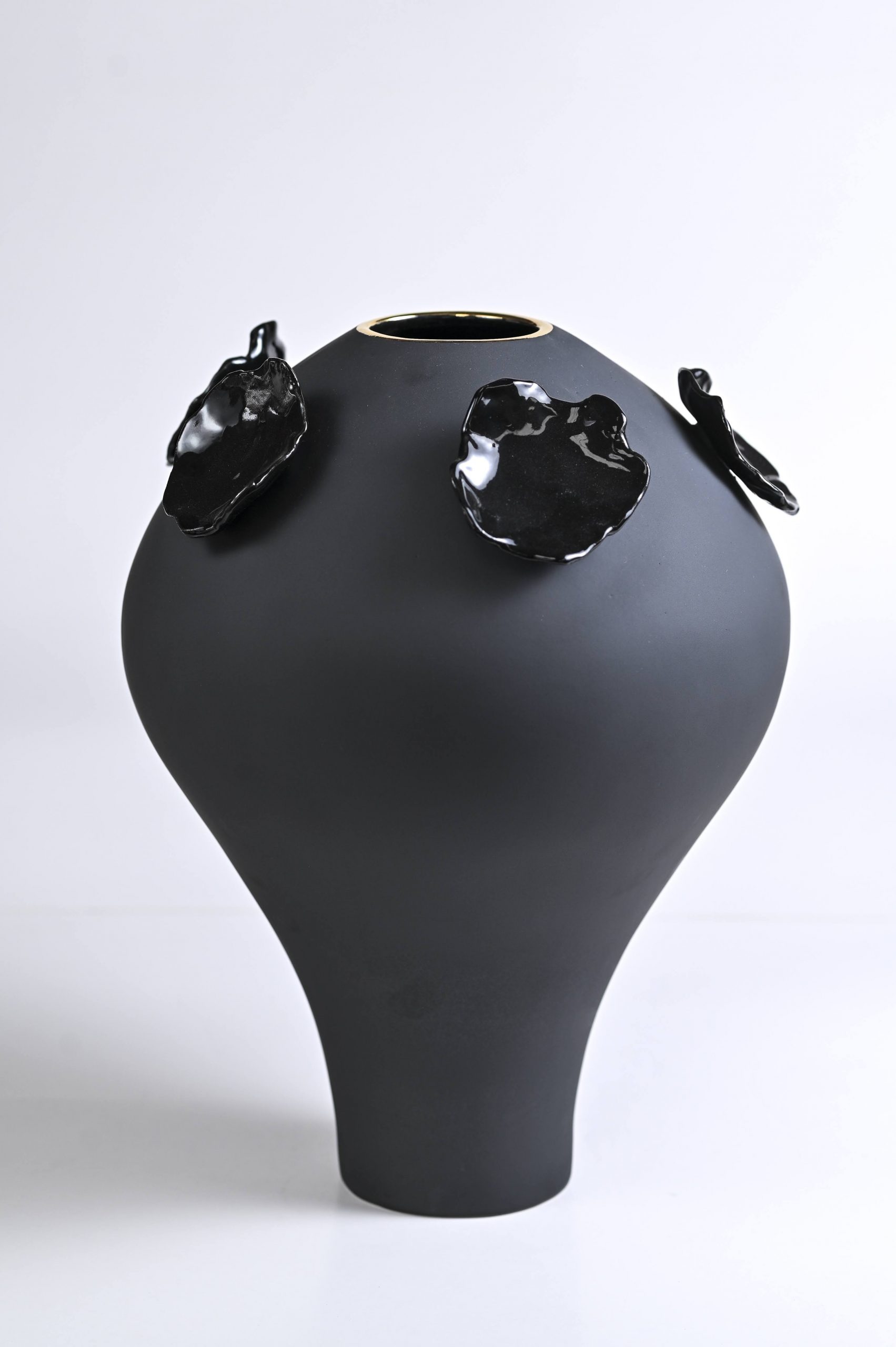 Handcrafted of signature ultra matte glazes on stoneware or porcelain with 22k gold details.