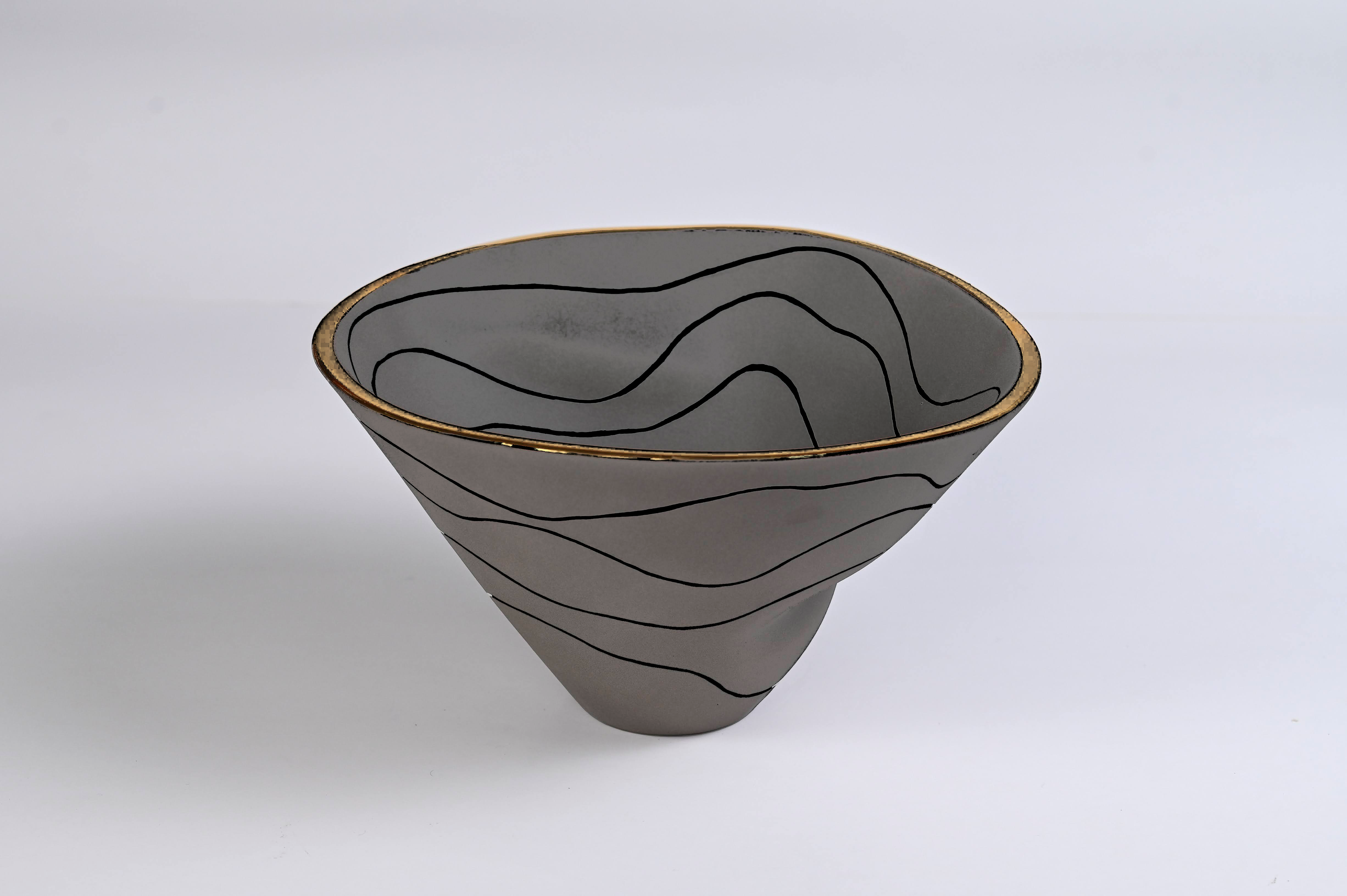 Handcrafted of signature ultra matte glazes on stoneware or porcelain with 22k gold details.
