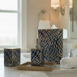 Art for the bath. Entirely crafted by hand from start to finish, our luxury bath collection is made of Artist hand-painted mirror in a version of verre eglomise. This process dates back centuries and is, in essence, reverse painted glass and mirror in a multi-step process. We have modernized this historical technique, infusing the collection with a fresh and exciting spirit.