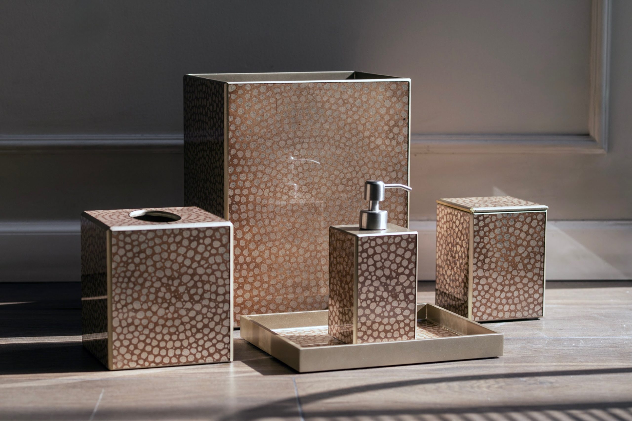 Art for the bath. Entirely crafted by hand from start to finish, our luxury bath collection is made of Artist hand-painted mirror in a version of verre eglomise.  This process dates back centuries and is, in essence, reverse painted glass and mirror in a multi-step process. We have modernized this historical technique, infusing the collection with a fresh and exciting spirit.