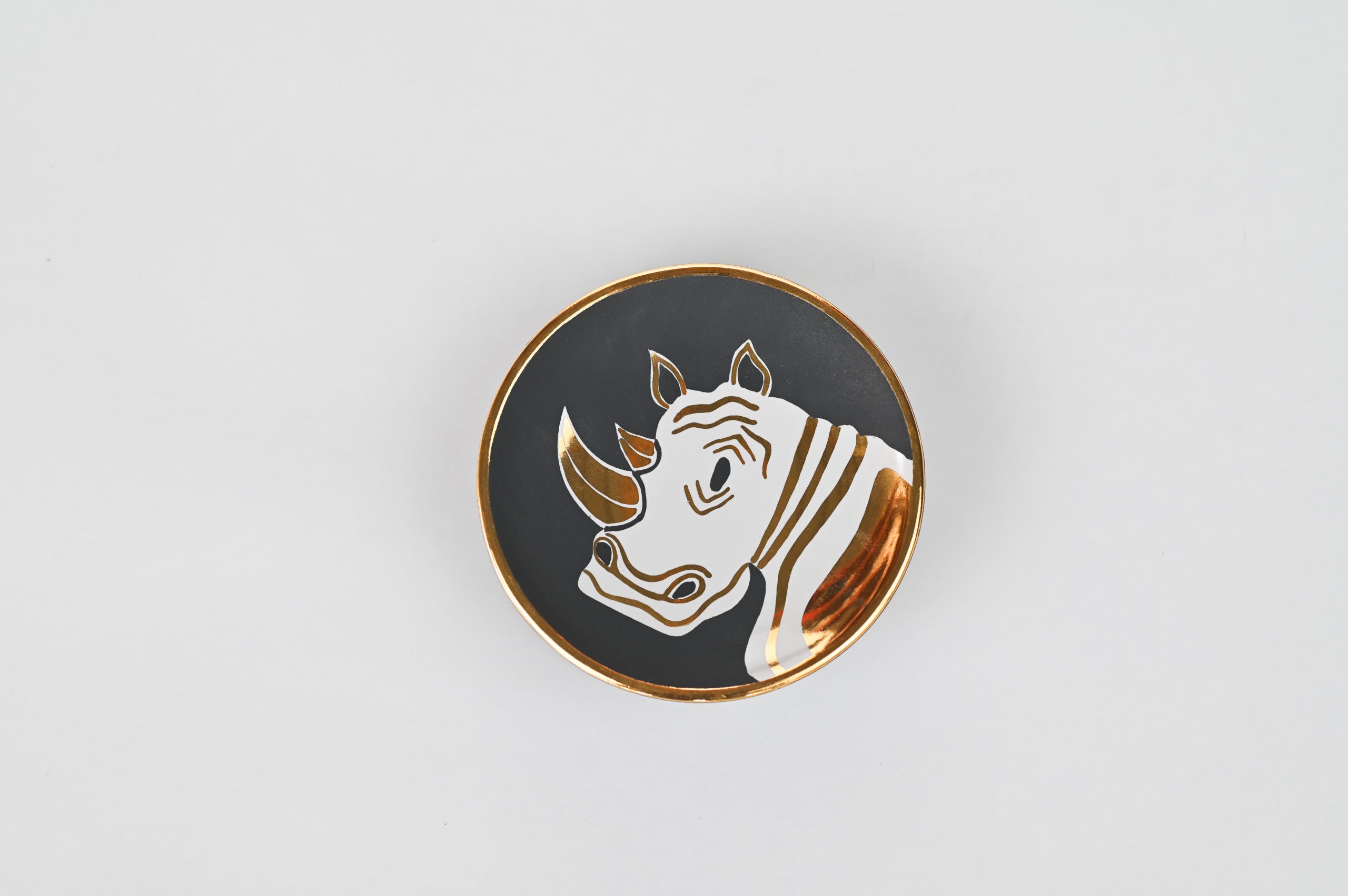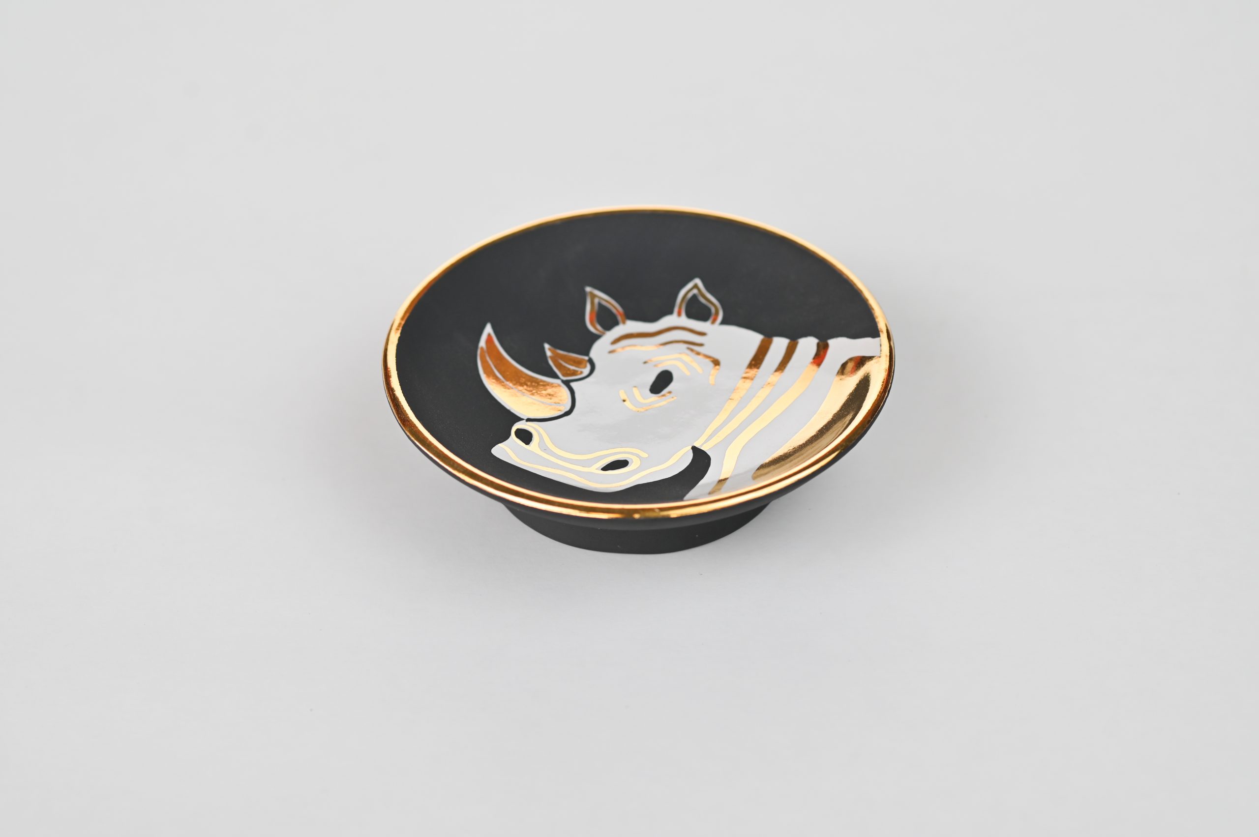 Handcrafted of signature ultra matte glazes on stoneware or porcelain with 22k gold details.