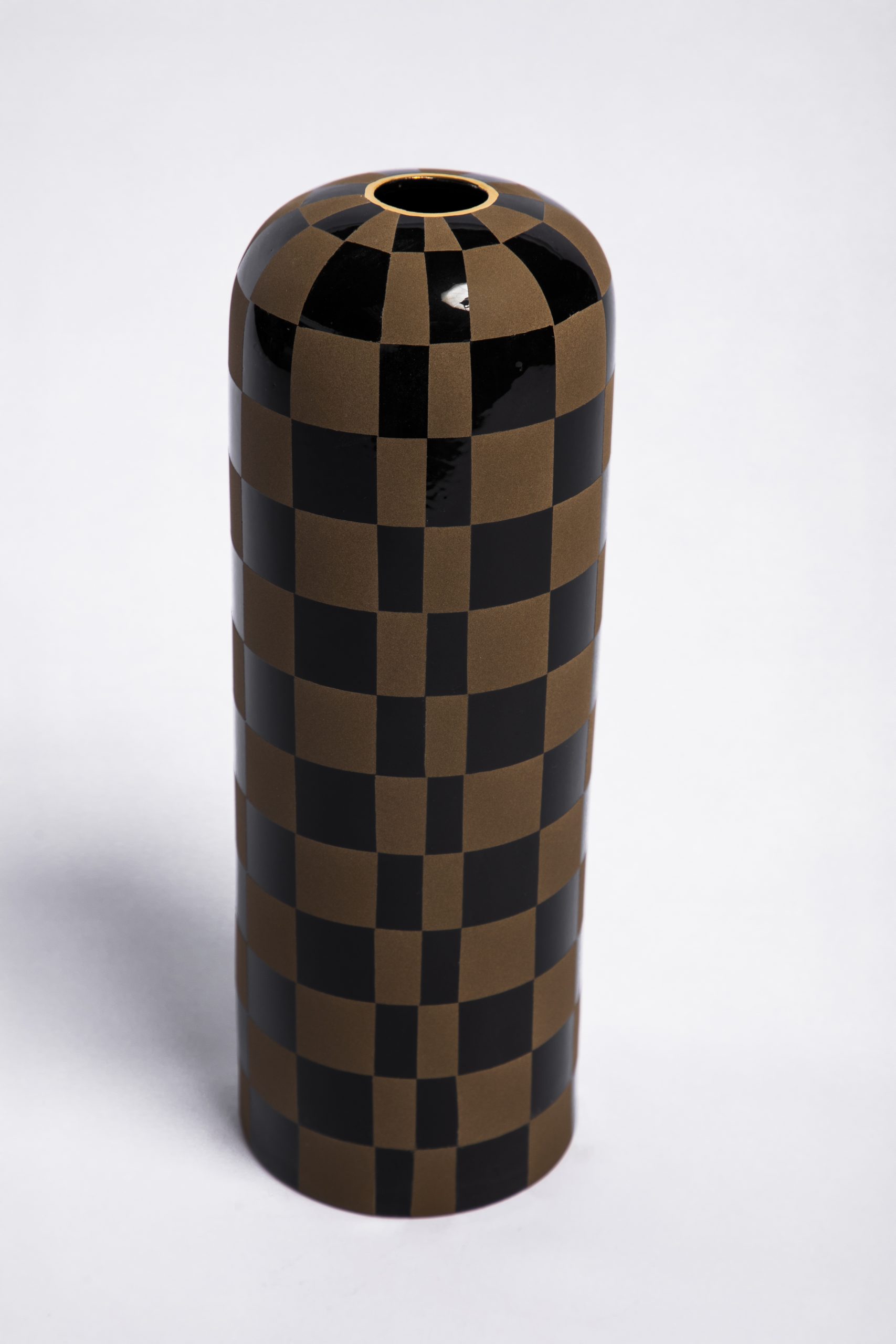 Handcrafted of signature ultra matte glazes on stoneware or porcelain with 22k gold details.
