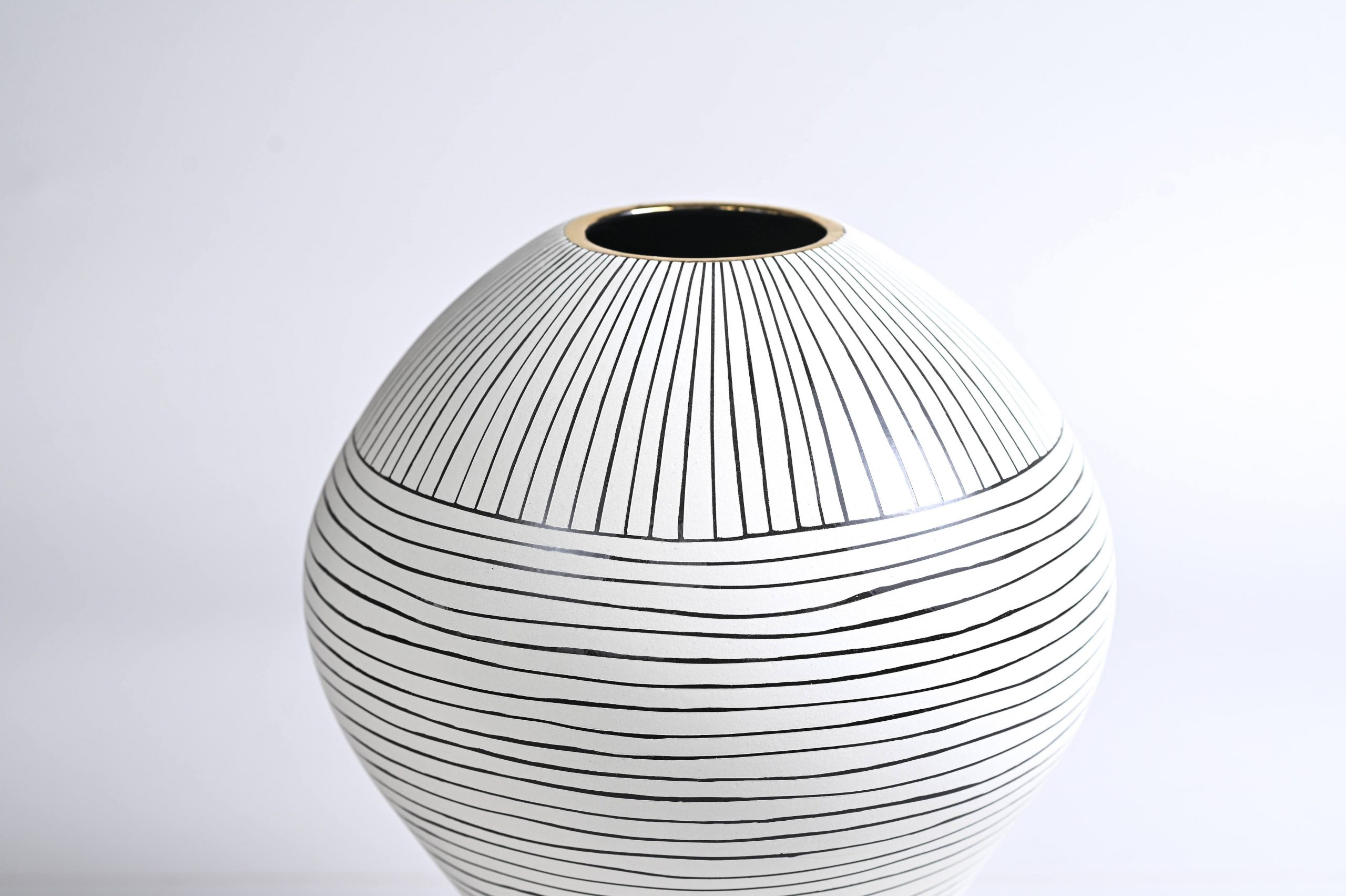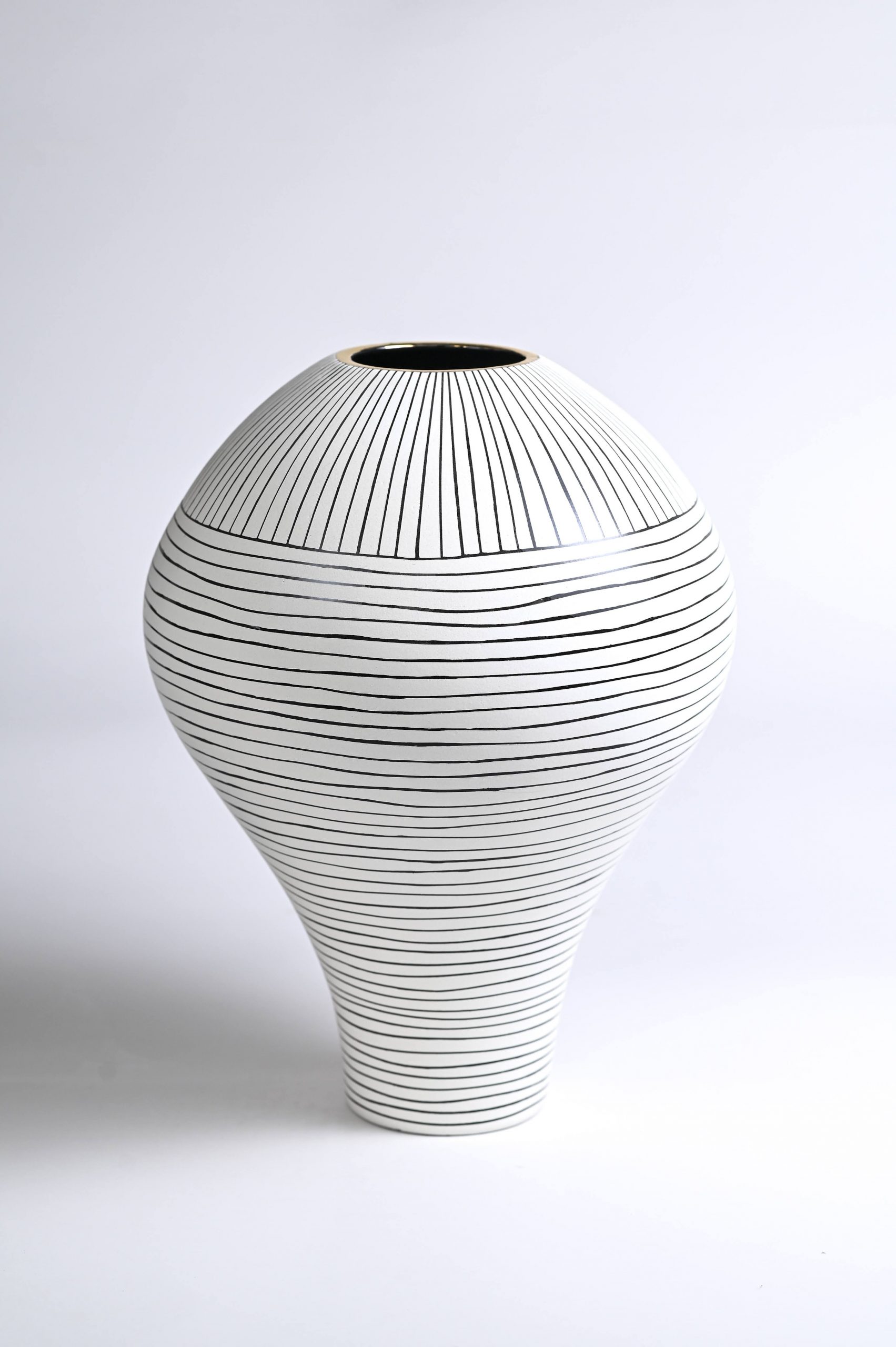 Handcrafted of signature ultra matte glazes on stoneware or porcelain with 22k gold details.