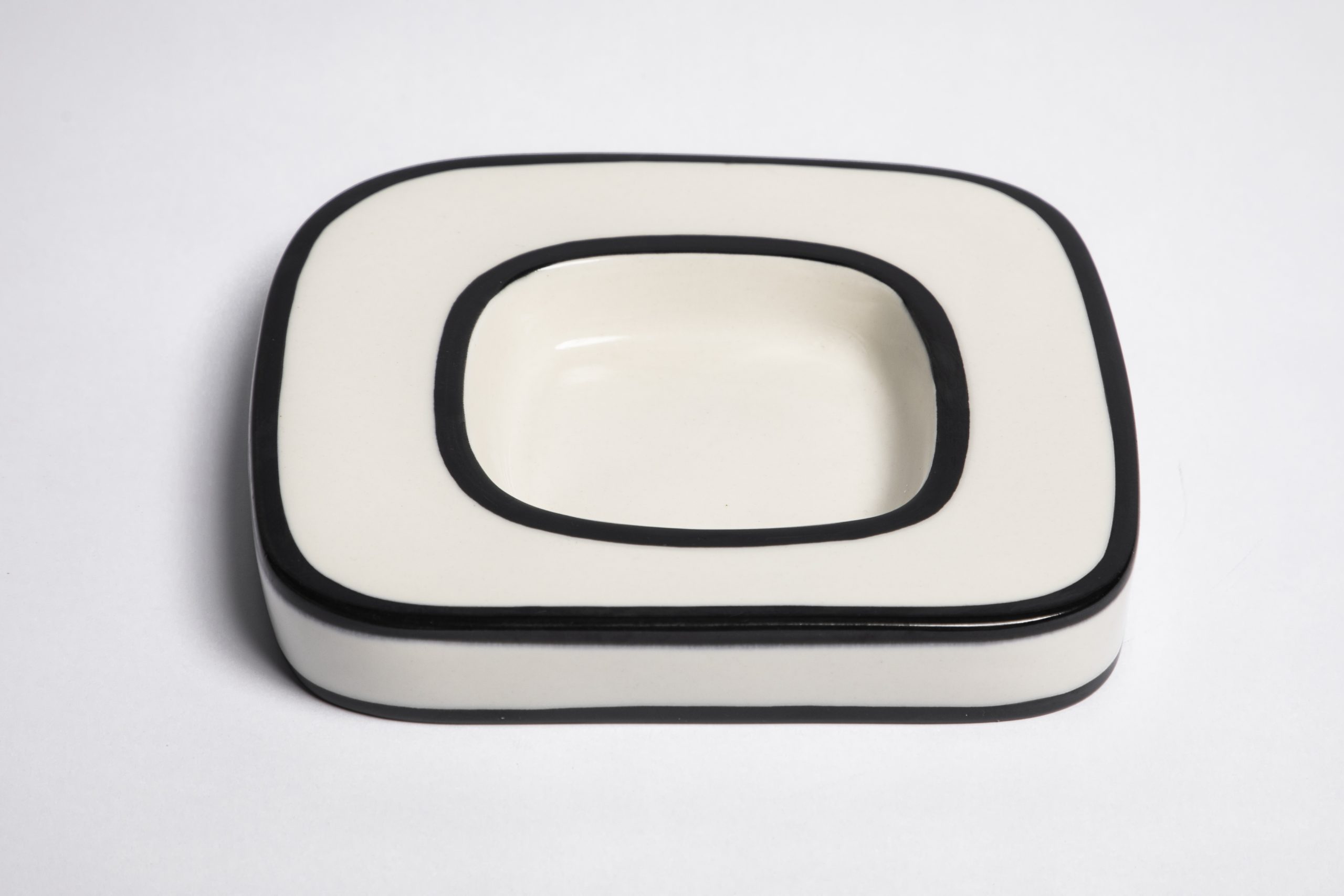 Square hand-painted tray. Food safe. Perfect as an ashtray, for olives etc or as a graphic decor piece.