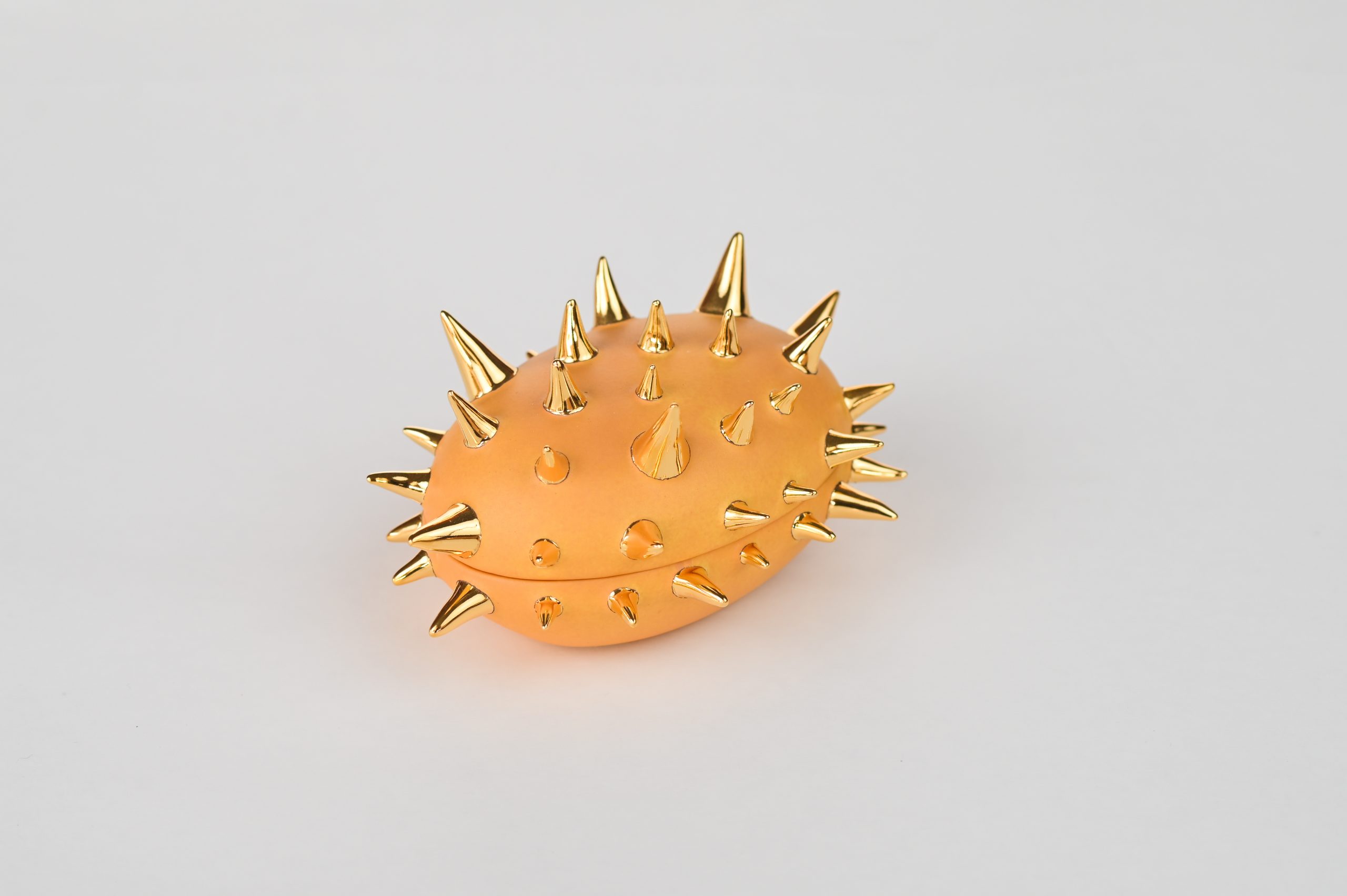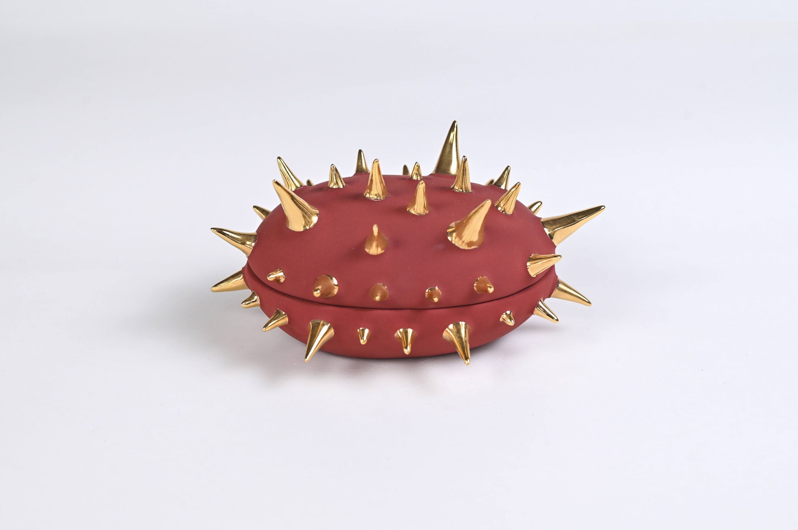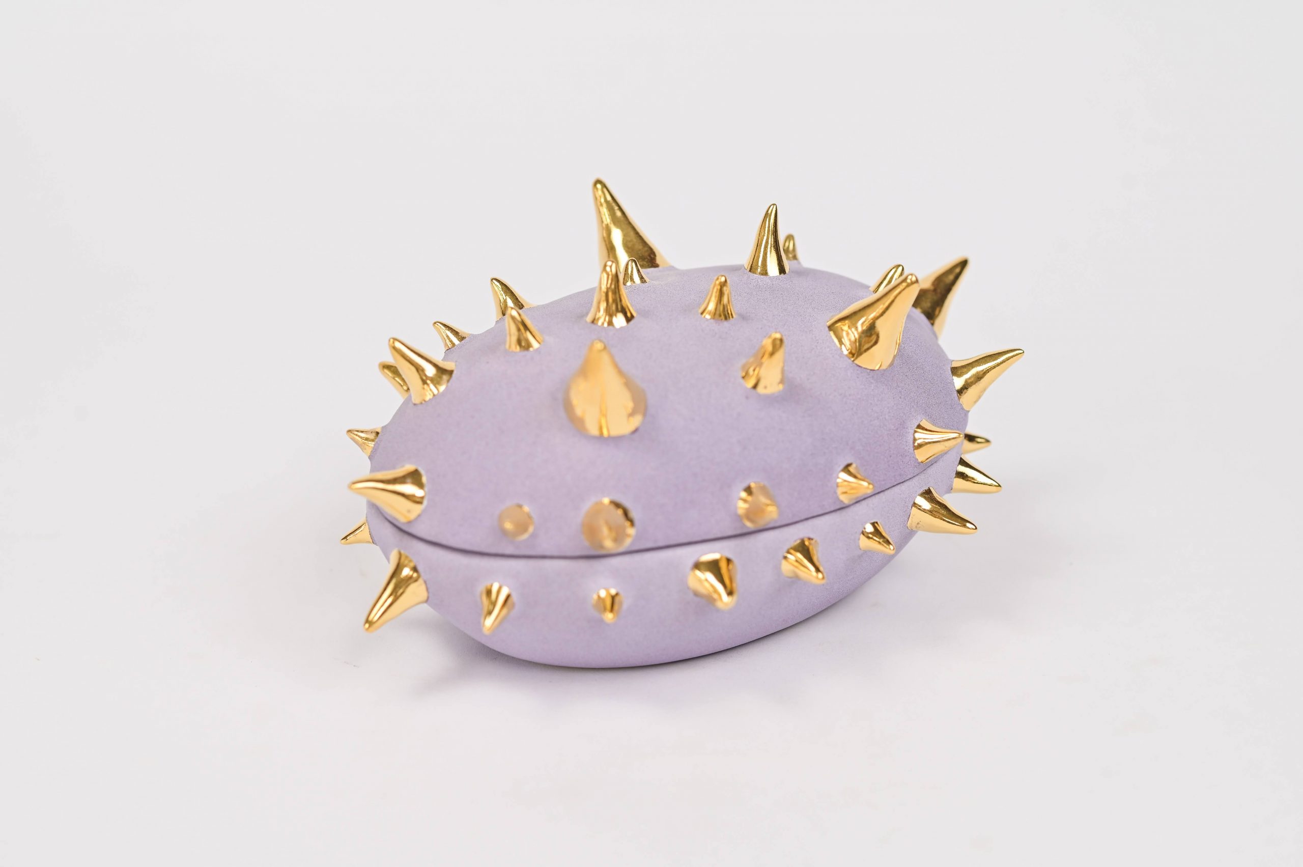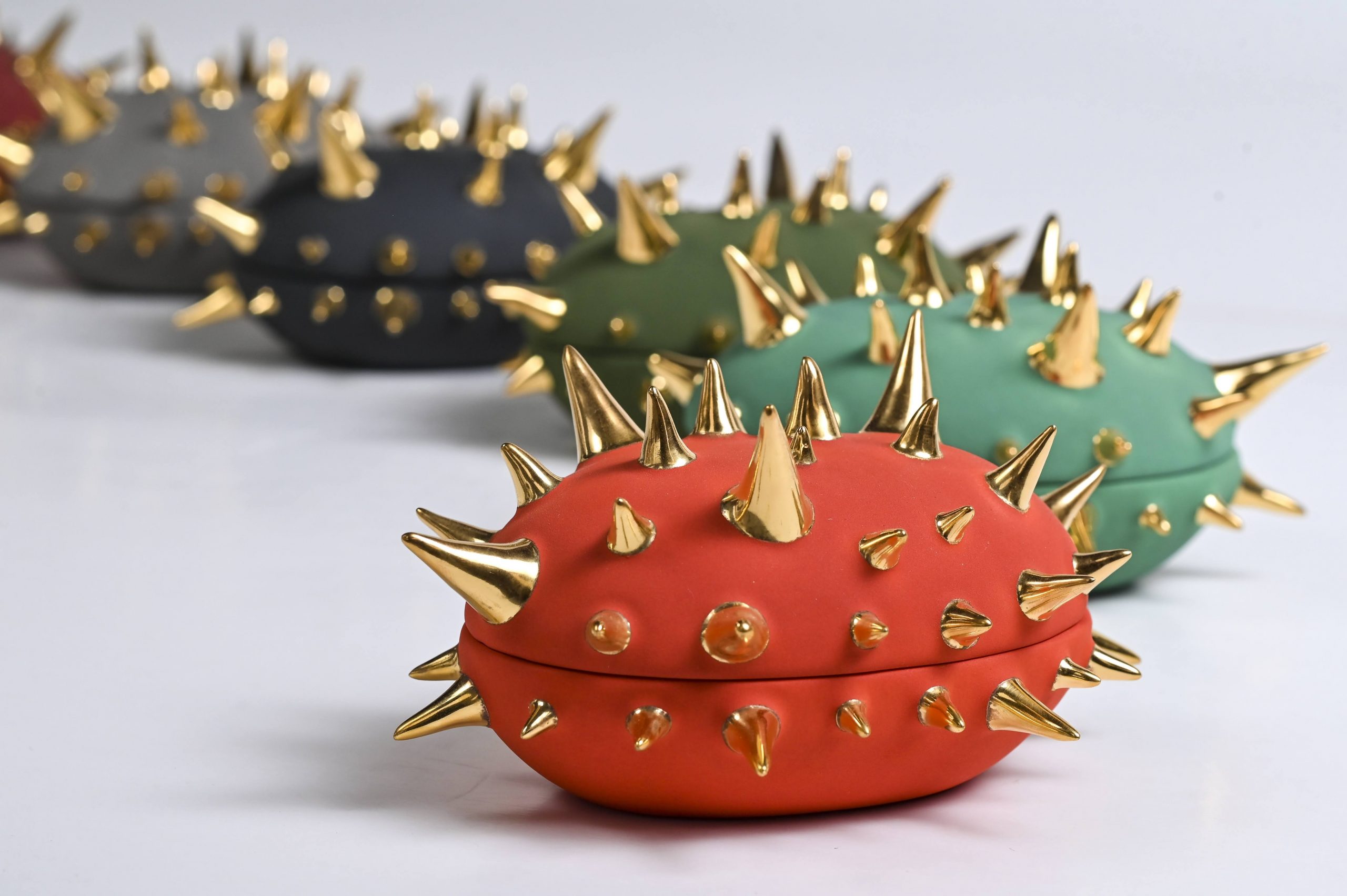 Handcrafted of signature ultra matte glazes on stoneware or porcelain with 22k gold details.