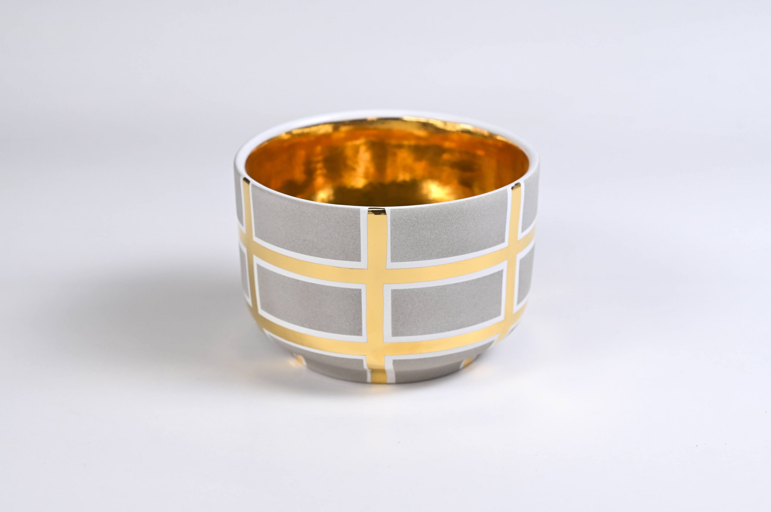 Handcrafted of signature ultra matte glazes on stoneware or porcelain with 22k gold details.