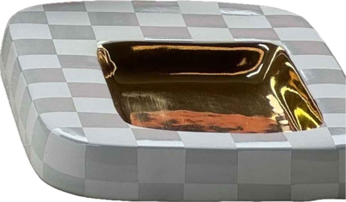Handcrafted of signature ultra matte glazes on stoneware or porcelain with 22k gold details.