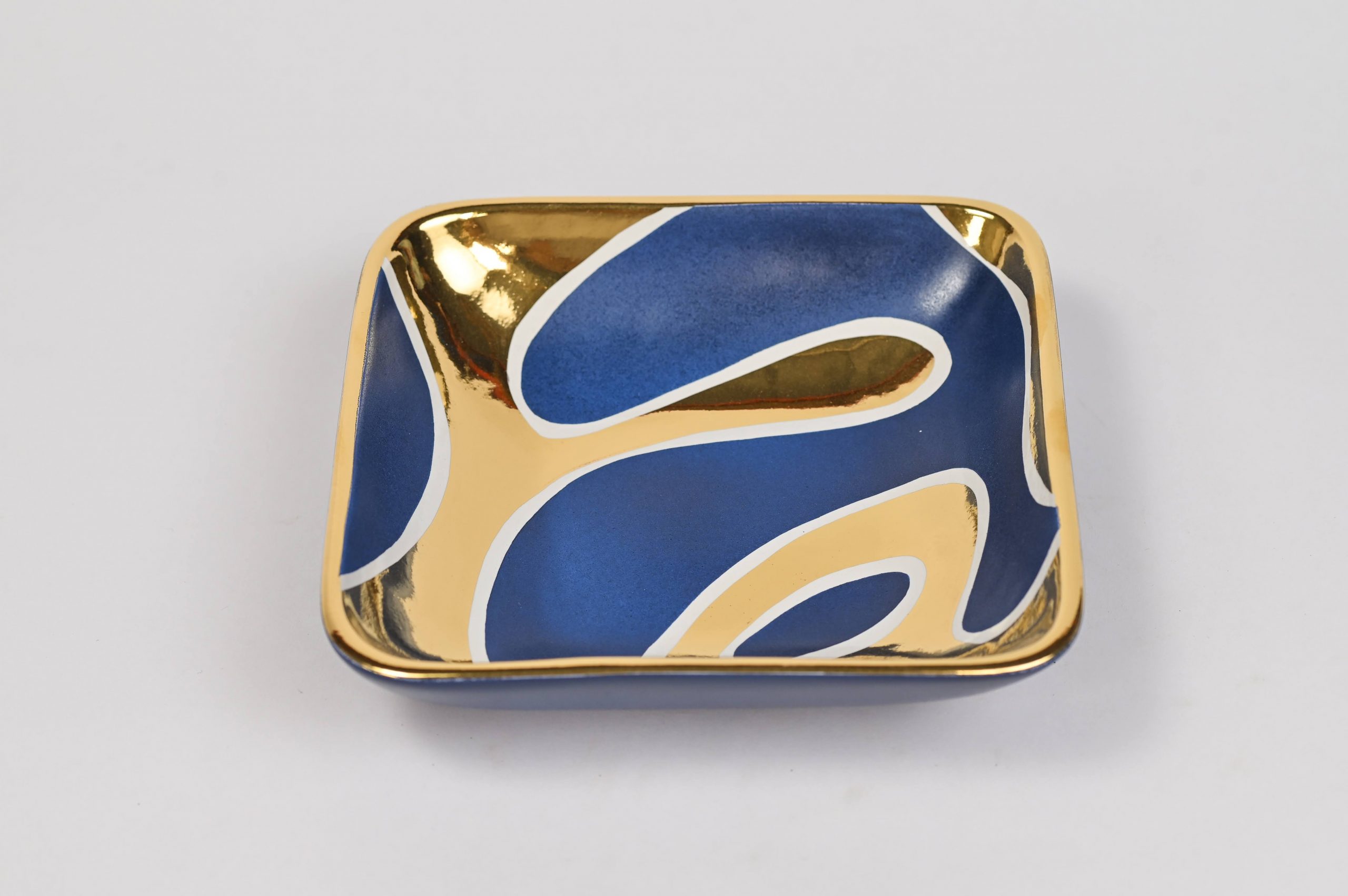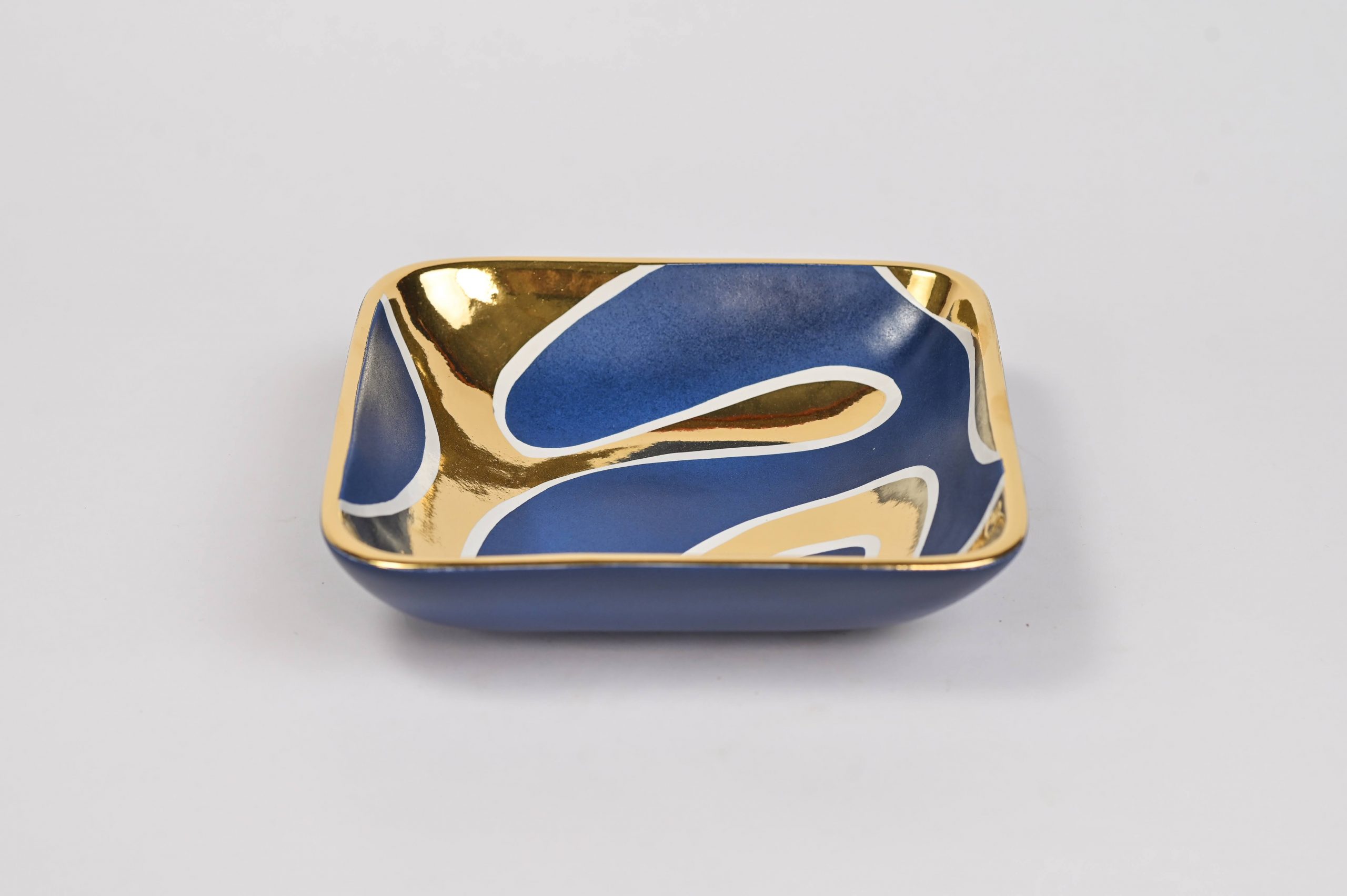 Handcrafted of signature ultra matte glazes on stoneware or porcelain with 22k gold details.