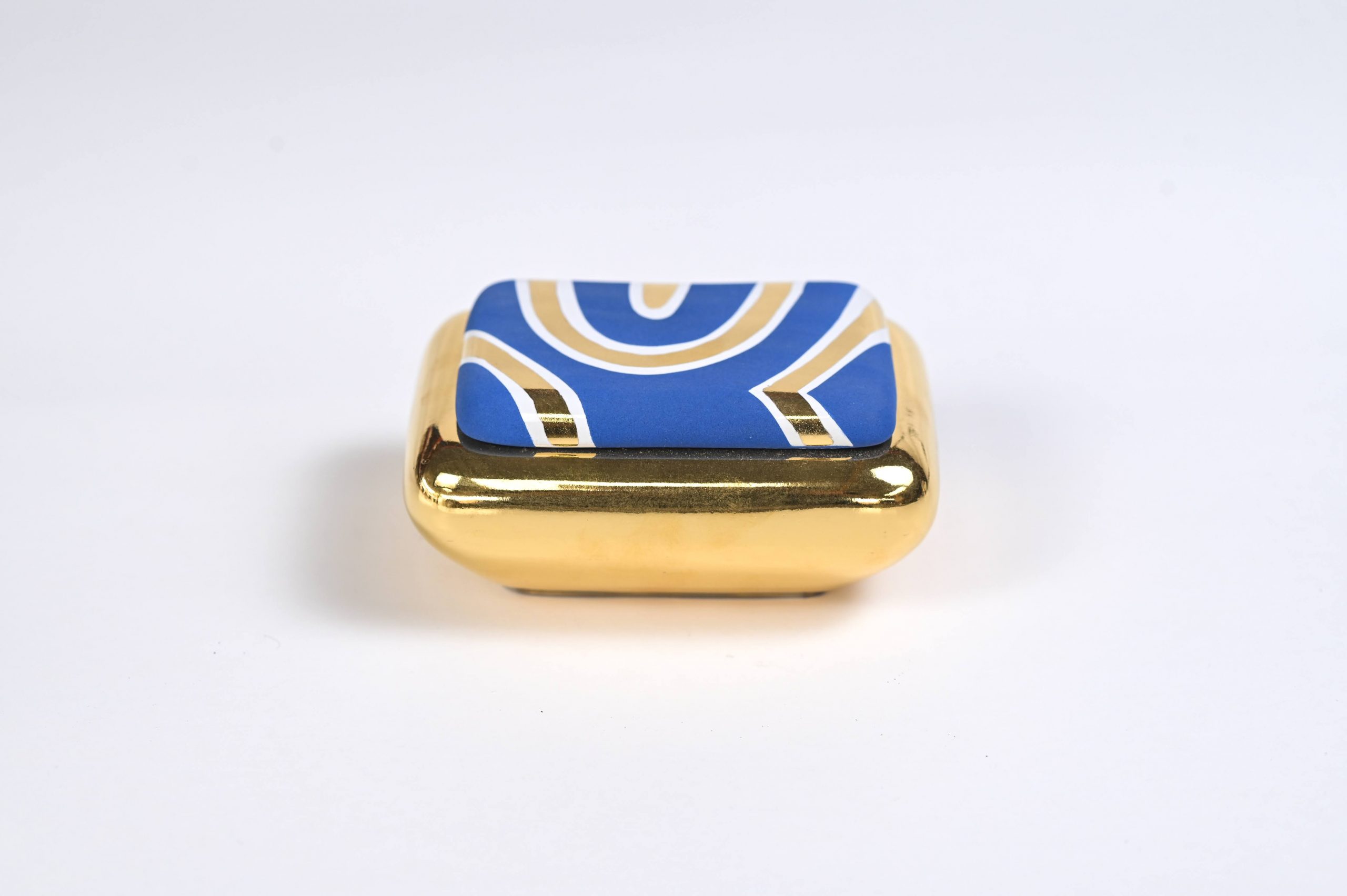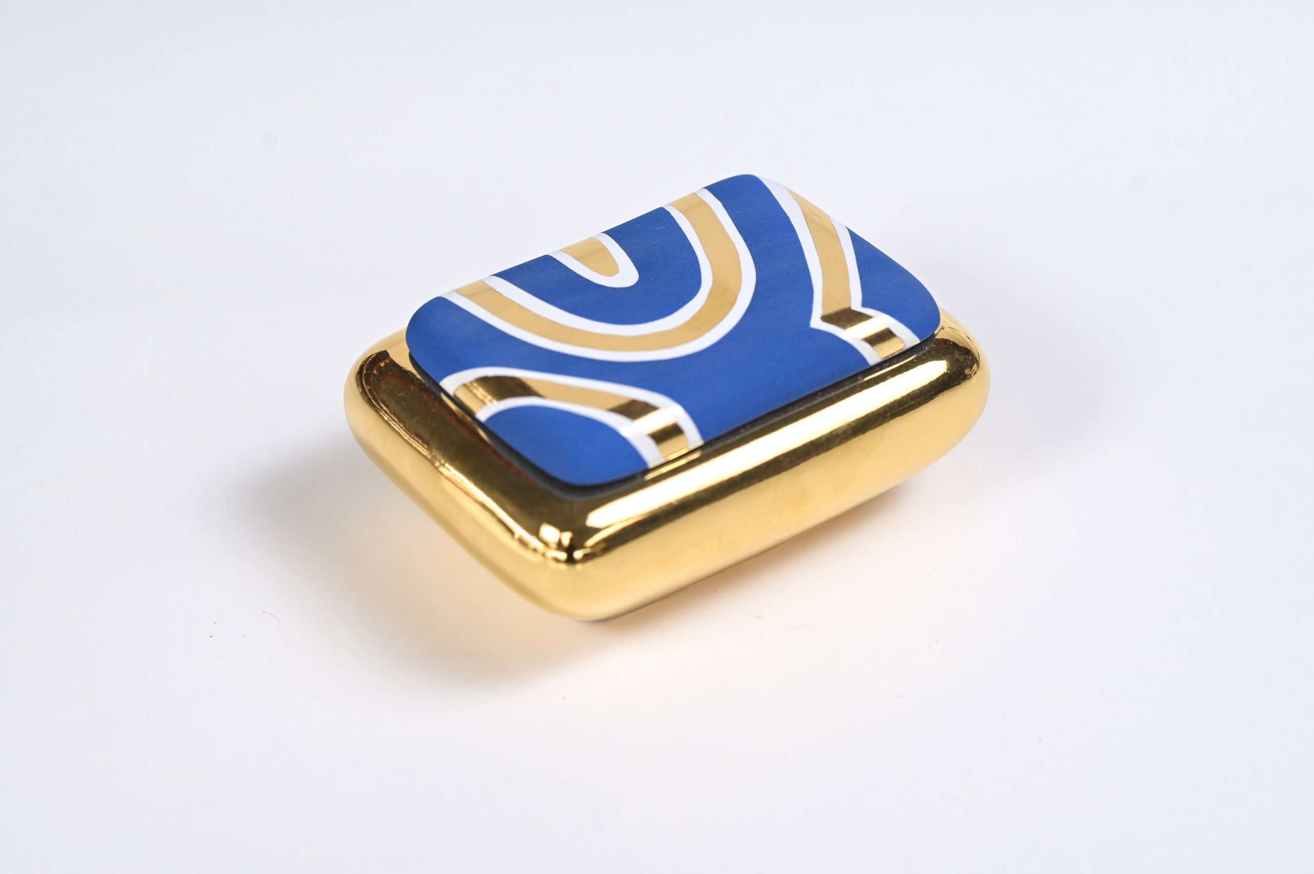 Small art deco box featuring our iconic mod zebra pattern. 22k gold details.