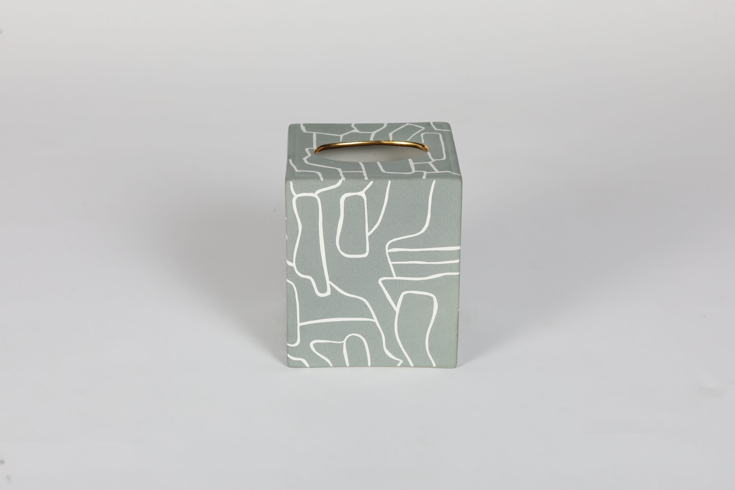 Handcrafted of signature ultra matte glazes on stoneware or porcelain with 22k gold details.
