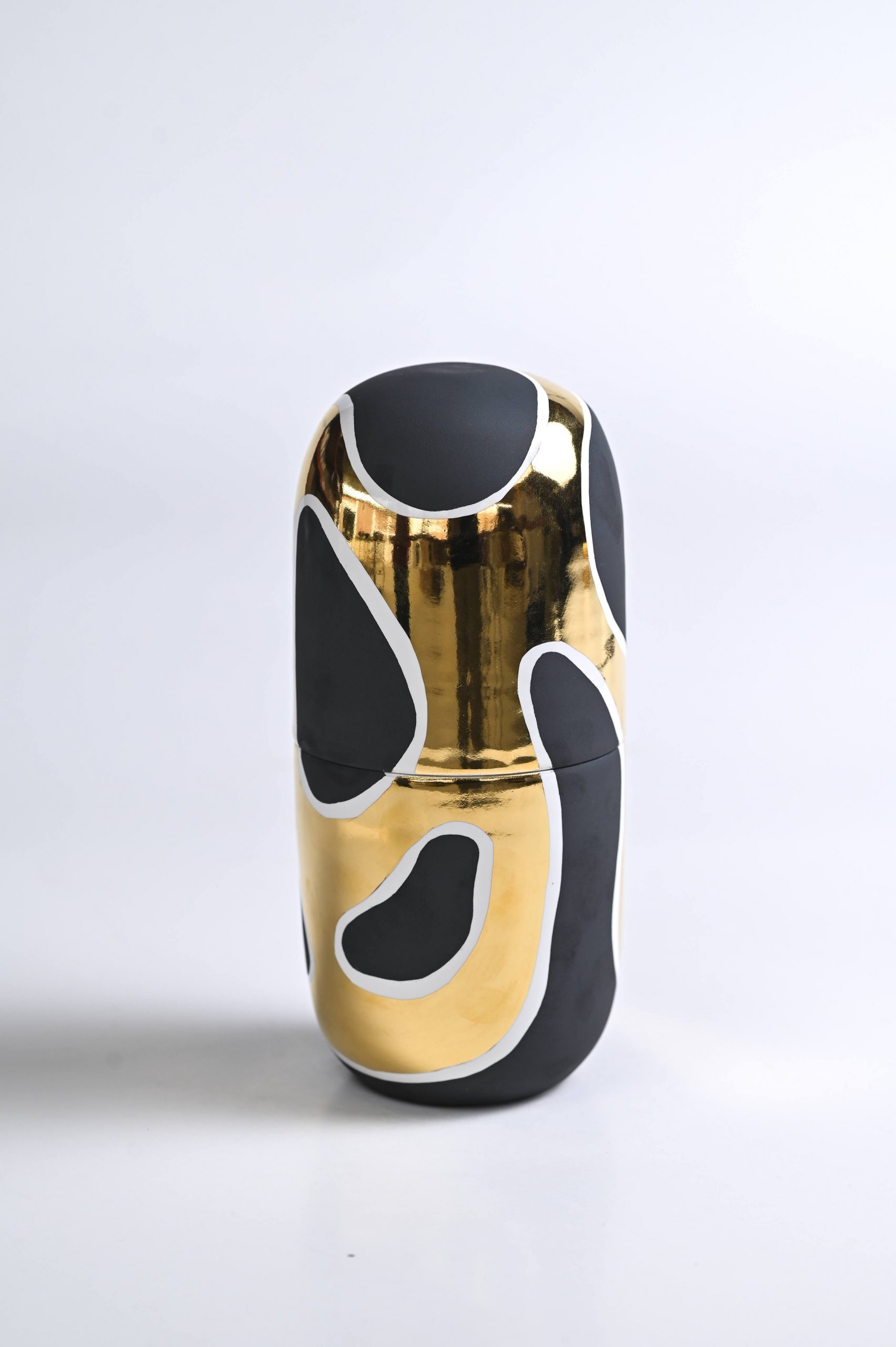 Vertical capsule box in our vintage lava pattern makes a functional table sculpture.