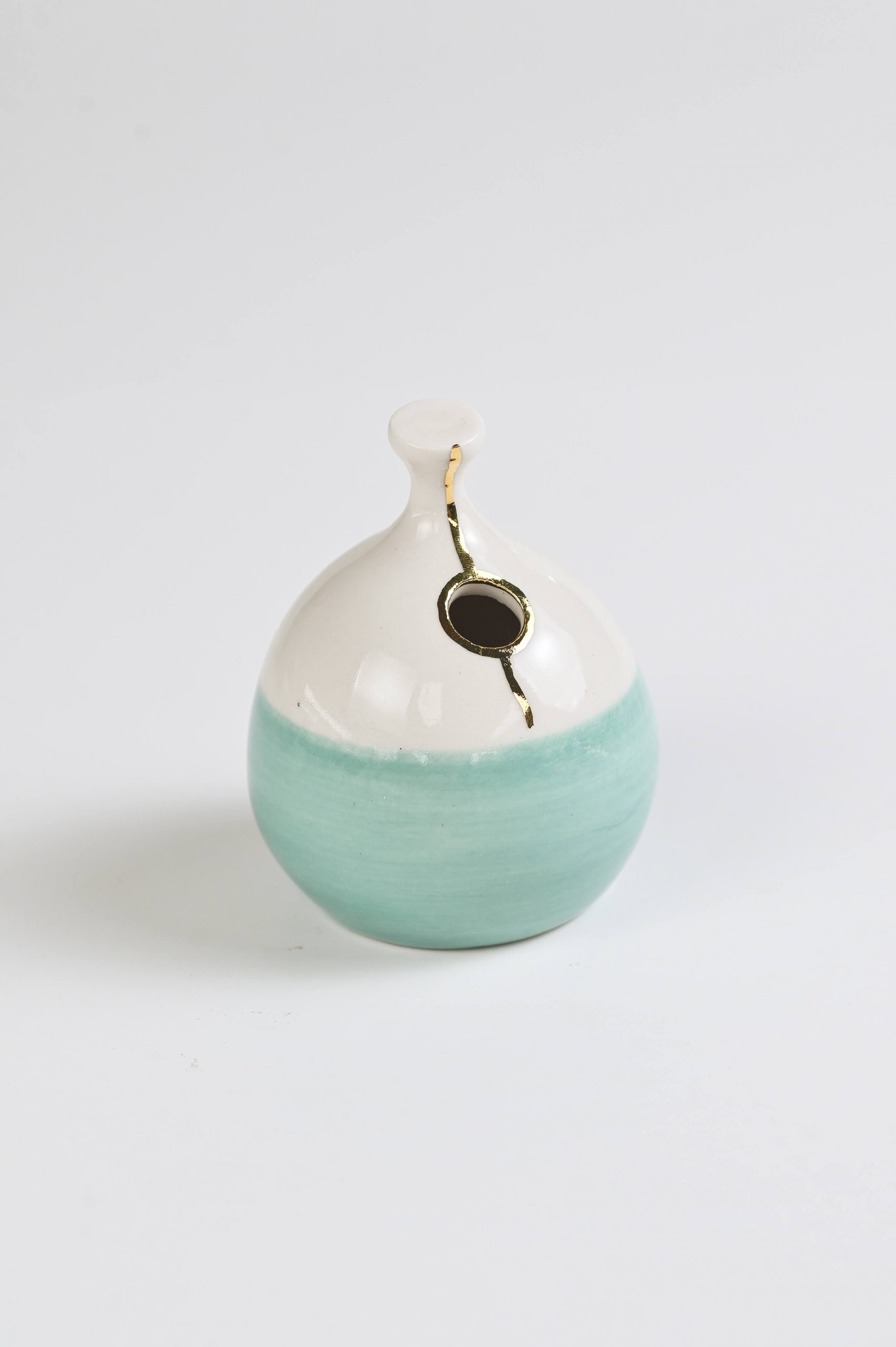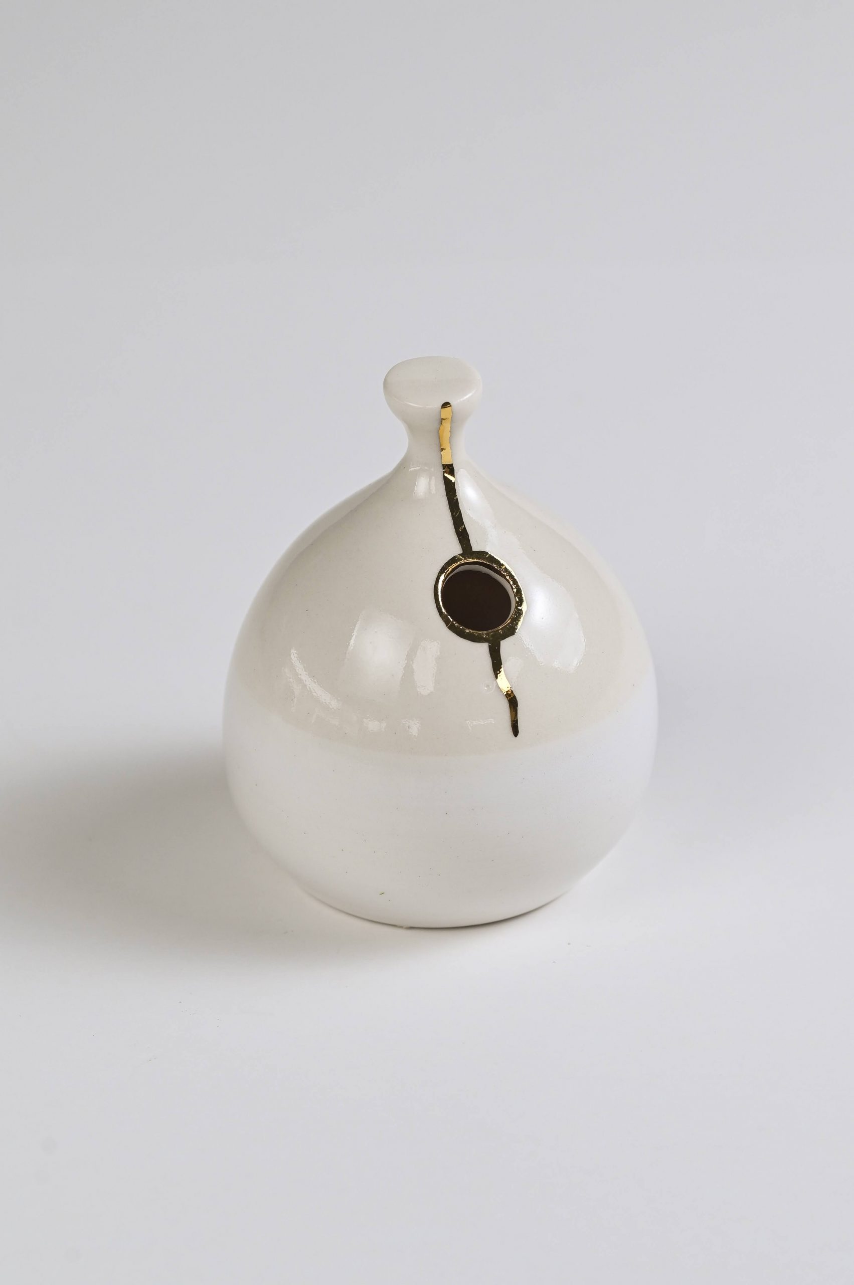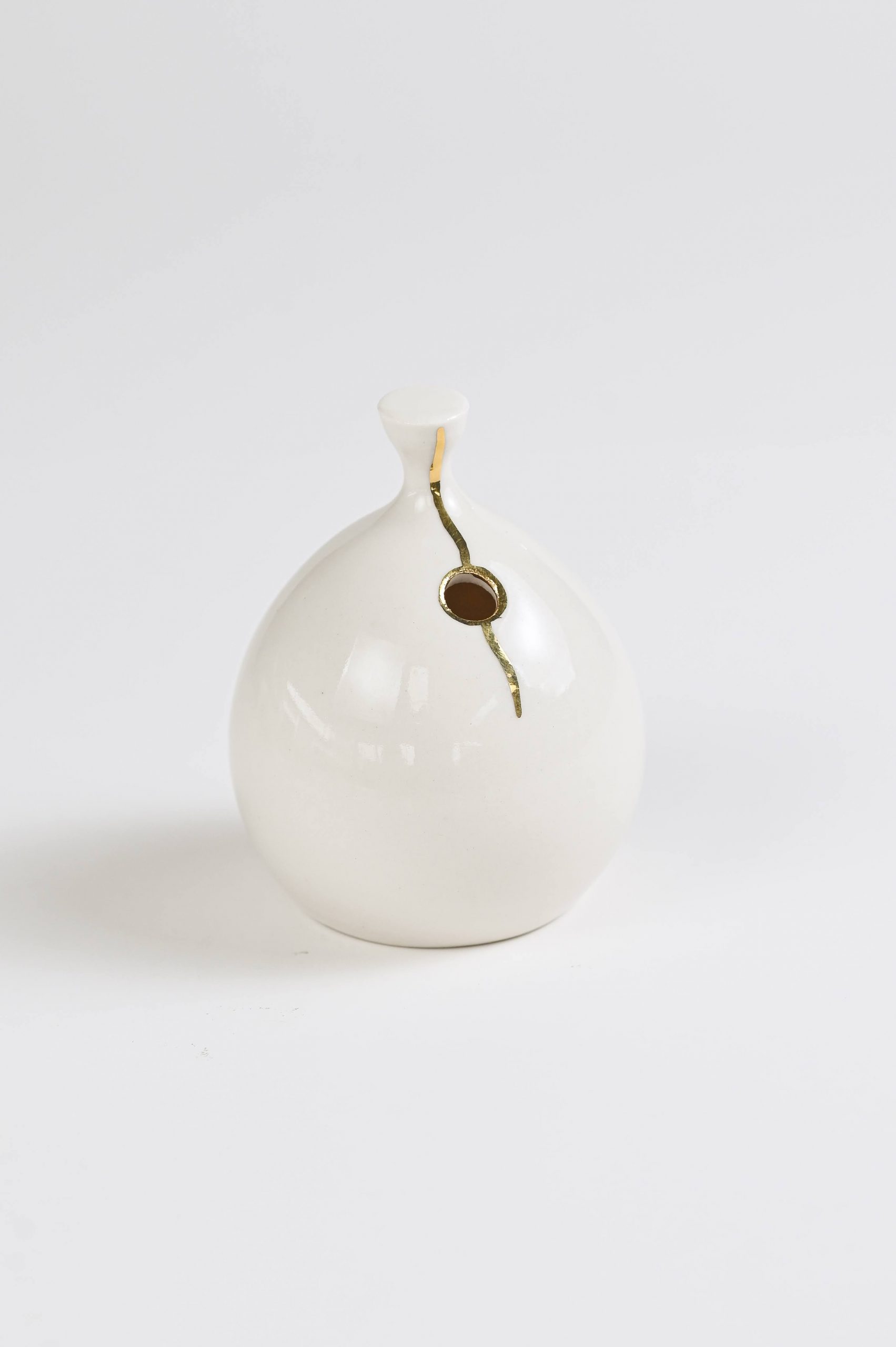 Handcrafted of signature ultra matte glazes on stoneware or porcelain with 22k gold details.