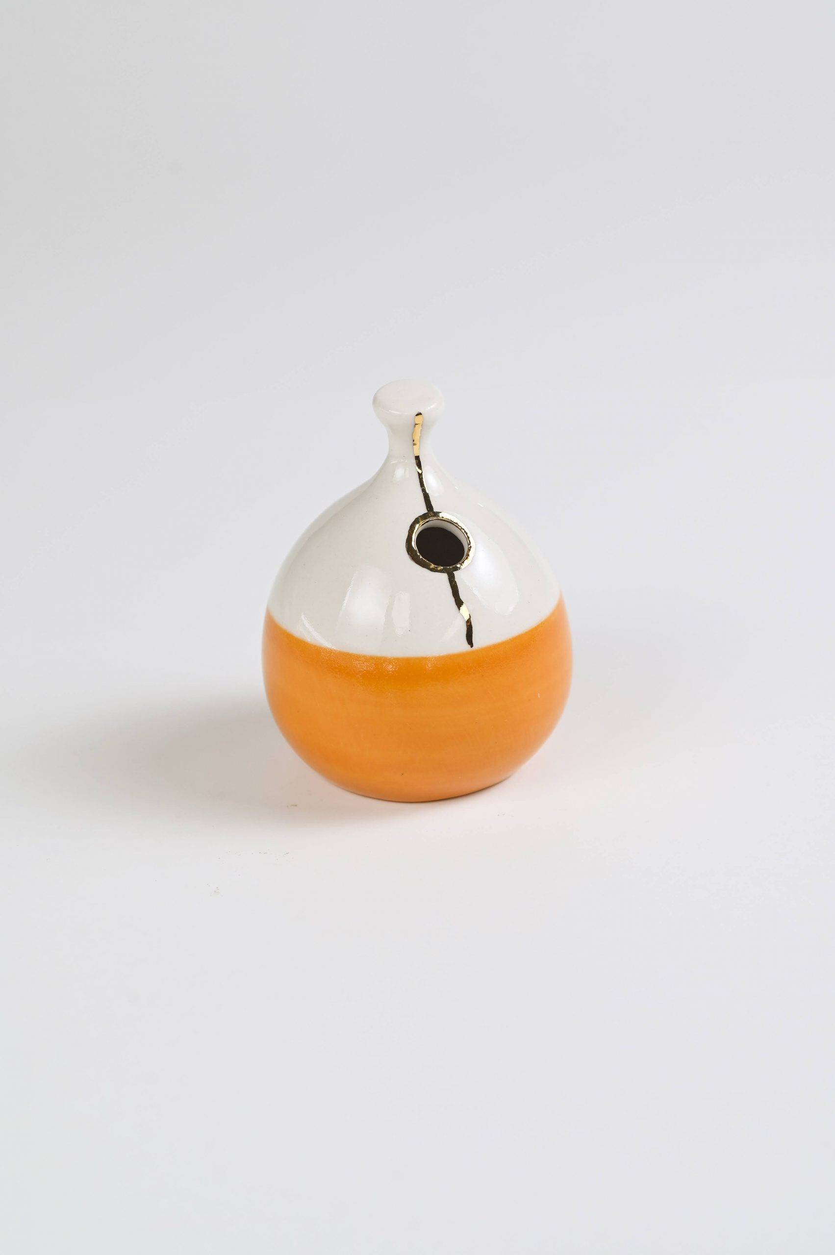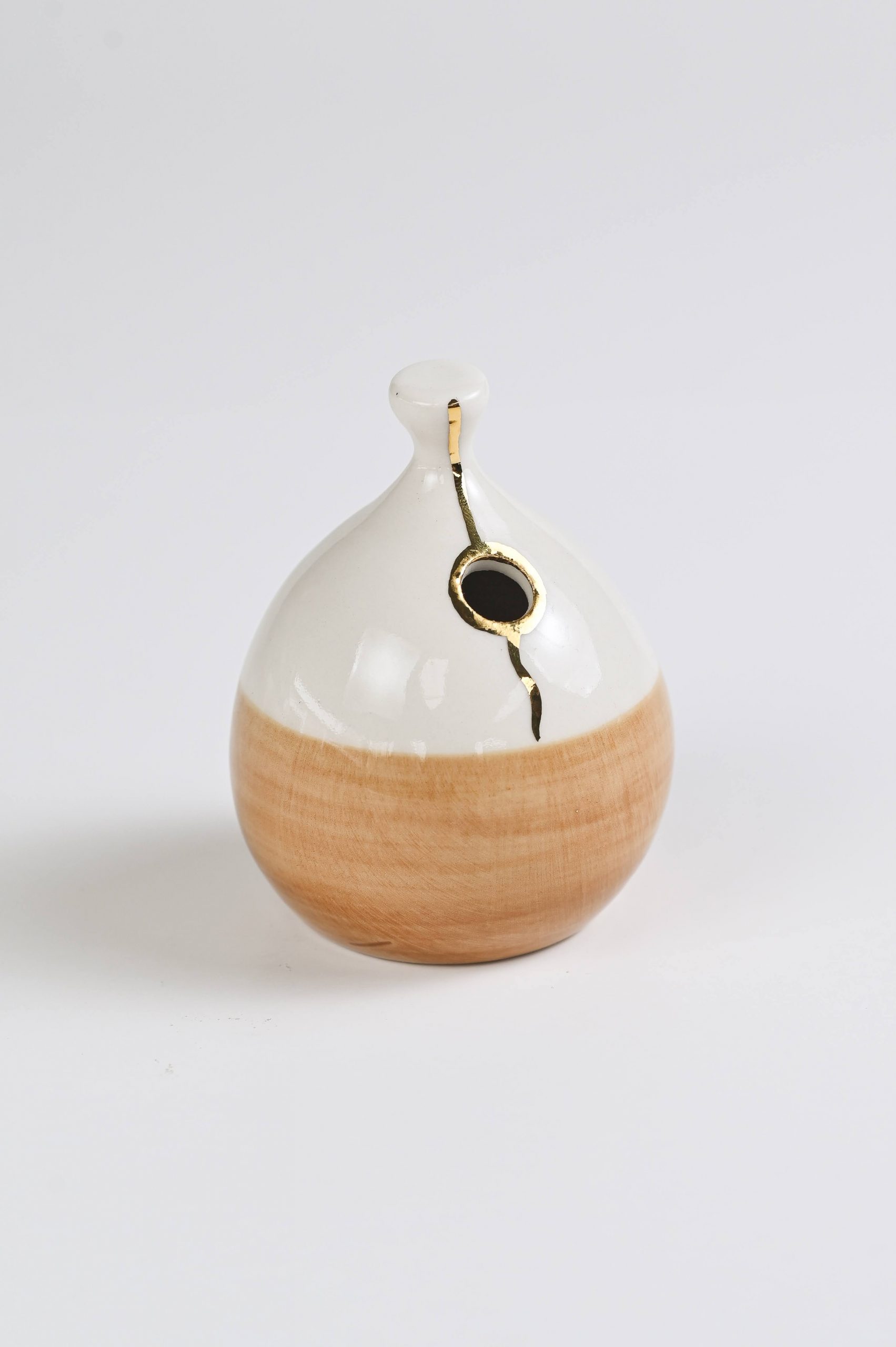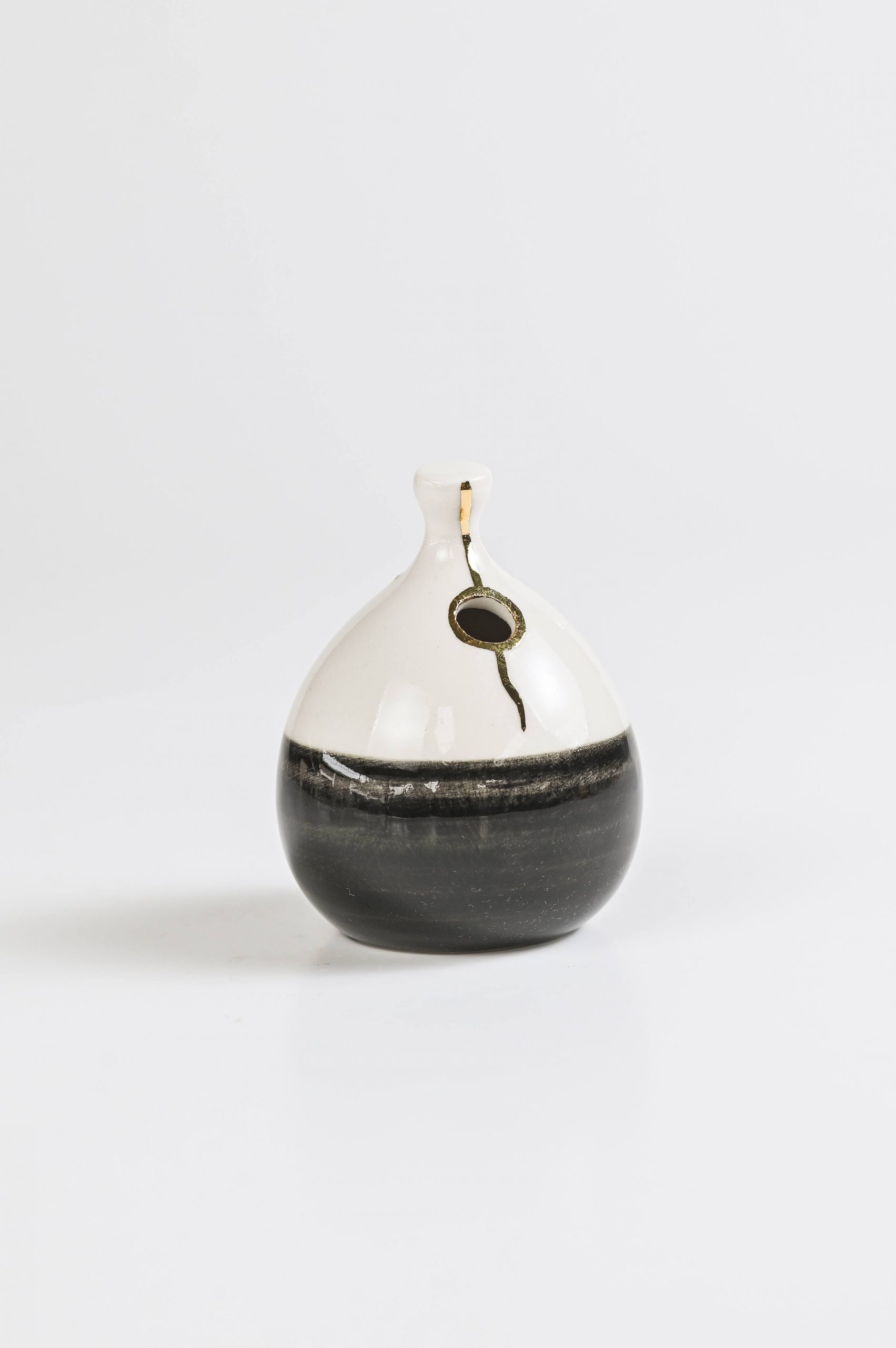 Handcrafted of signature ultra matte glazes on stoneware or porcelain with 22k gold details.