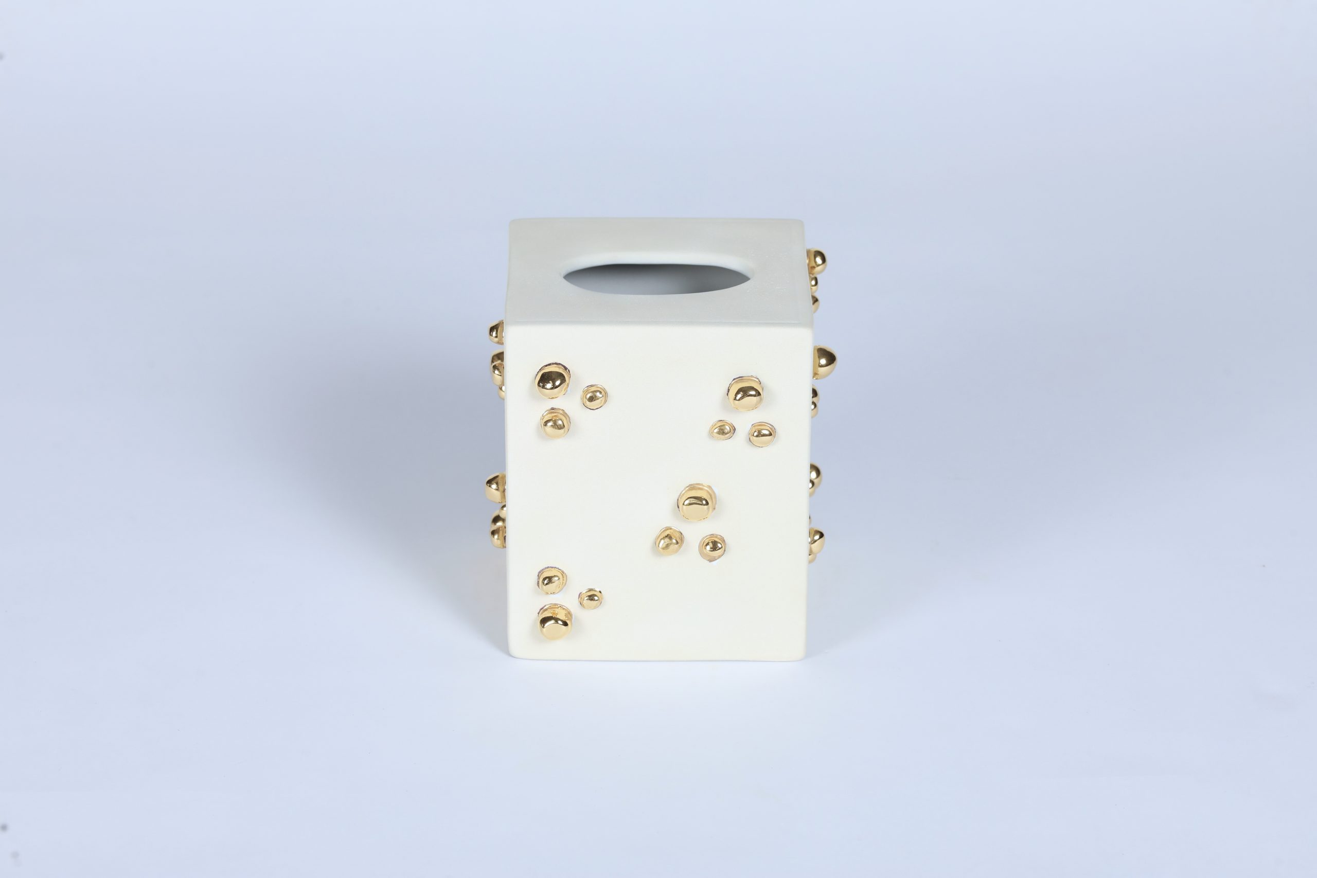 A stylish tissue experience. Handmade by artists, our hand placed 22k gold orbs one of a kind tissue box.