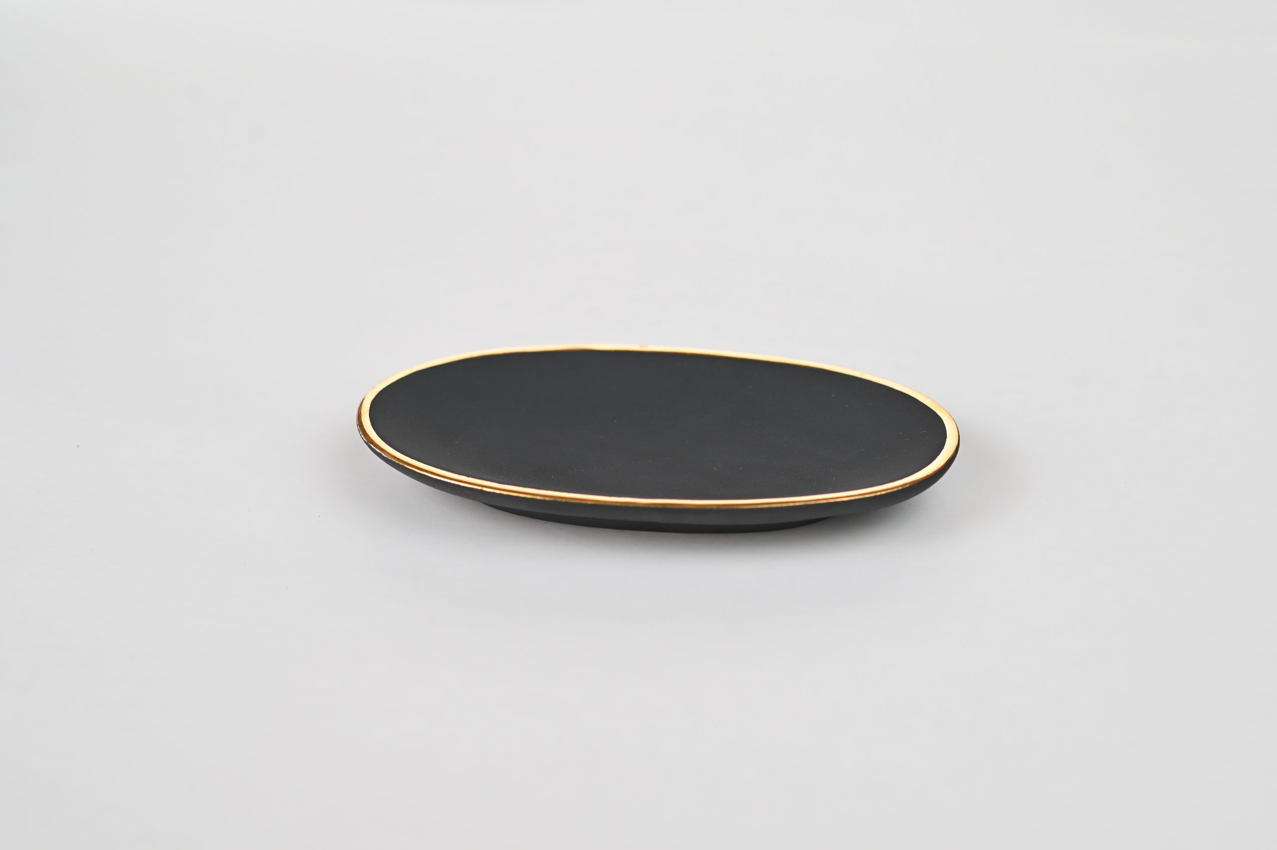 Handcrafted of signature ultra matte glazes on stoneware or porcelain with 22k gold details.