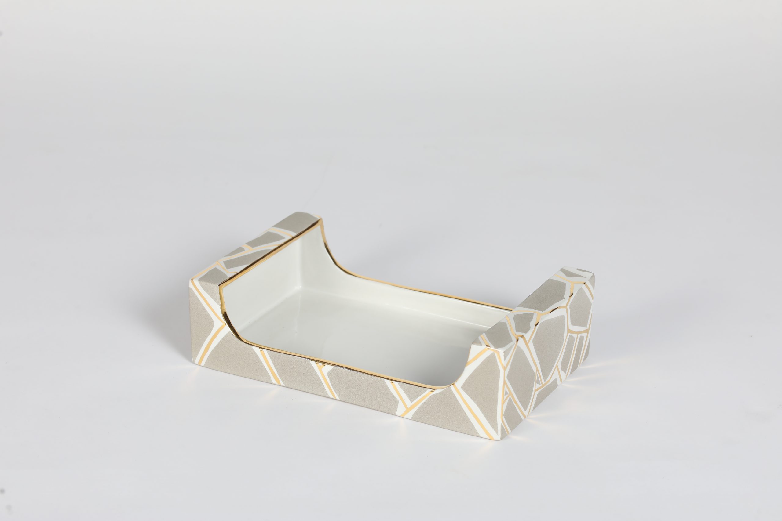 Handcrafted of signature ultra matte glazes on stoneware or porcelain with 22k gold details.