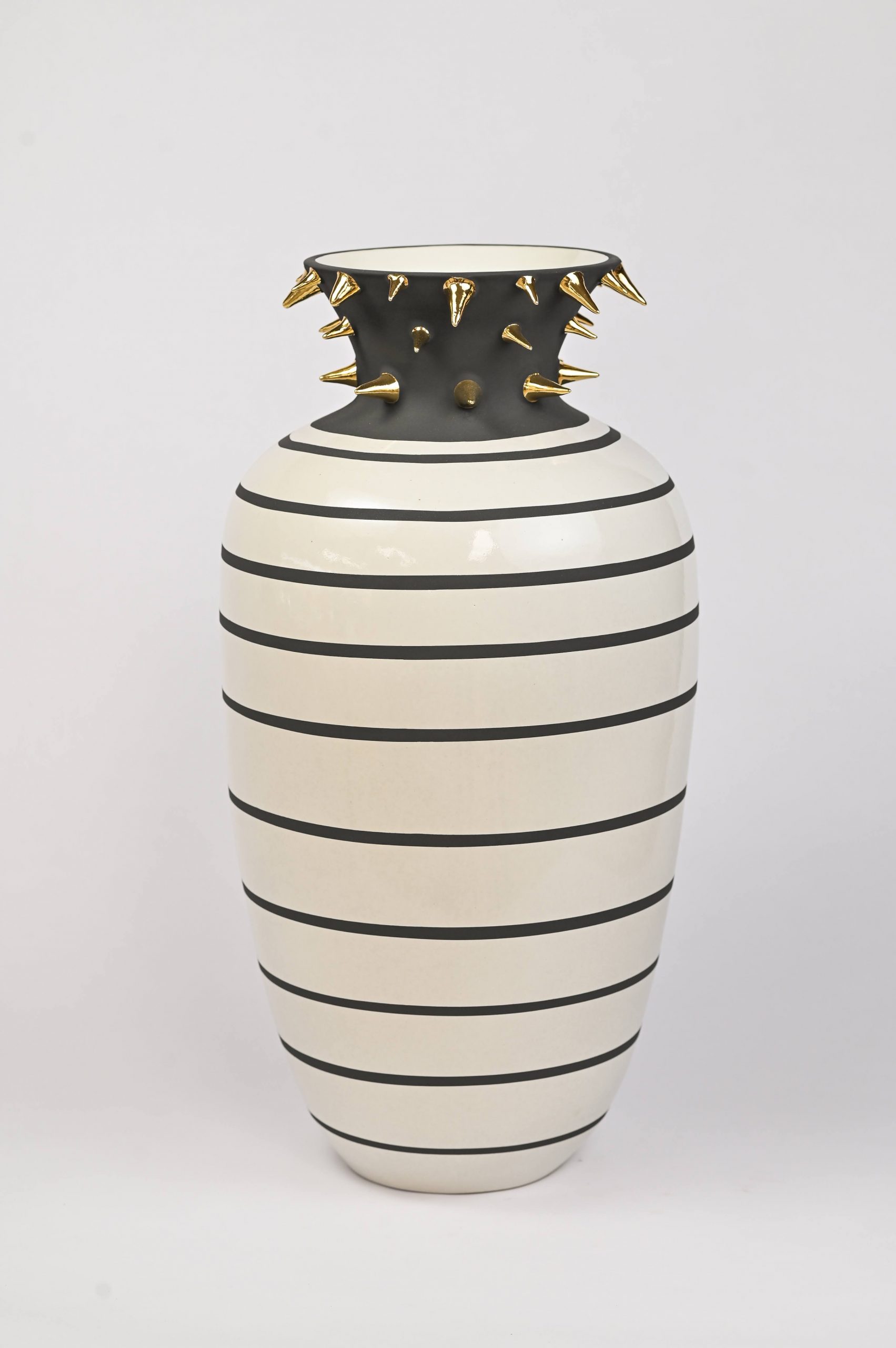Handcrafted of signature ultra matte glazes on stoneware or porcelain with 22k gold details.